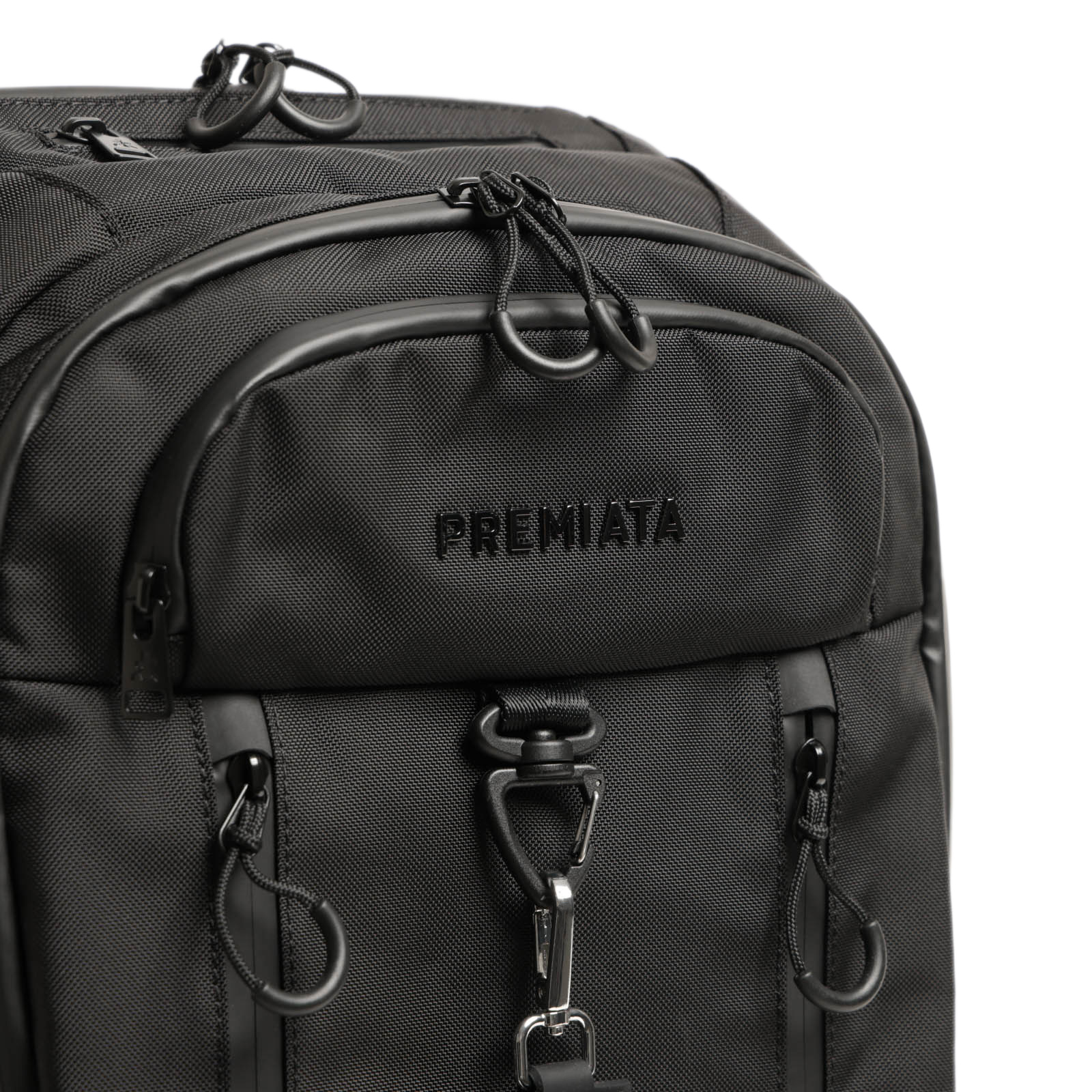 加えて外側も正面上部、正面左右、天井部の計4個のファスナーポケットを備えており、サイドにもボトル用のポケットを備え、すぐに取り出したい物、小物類などを収納可能です。