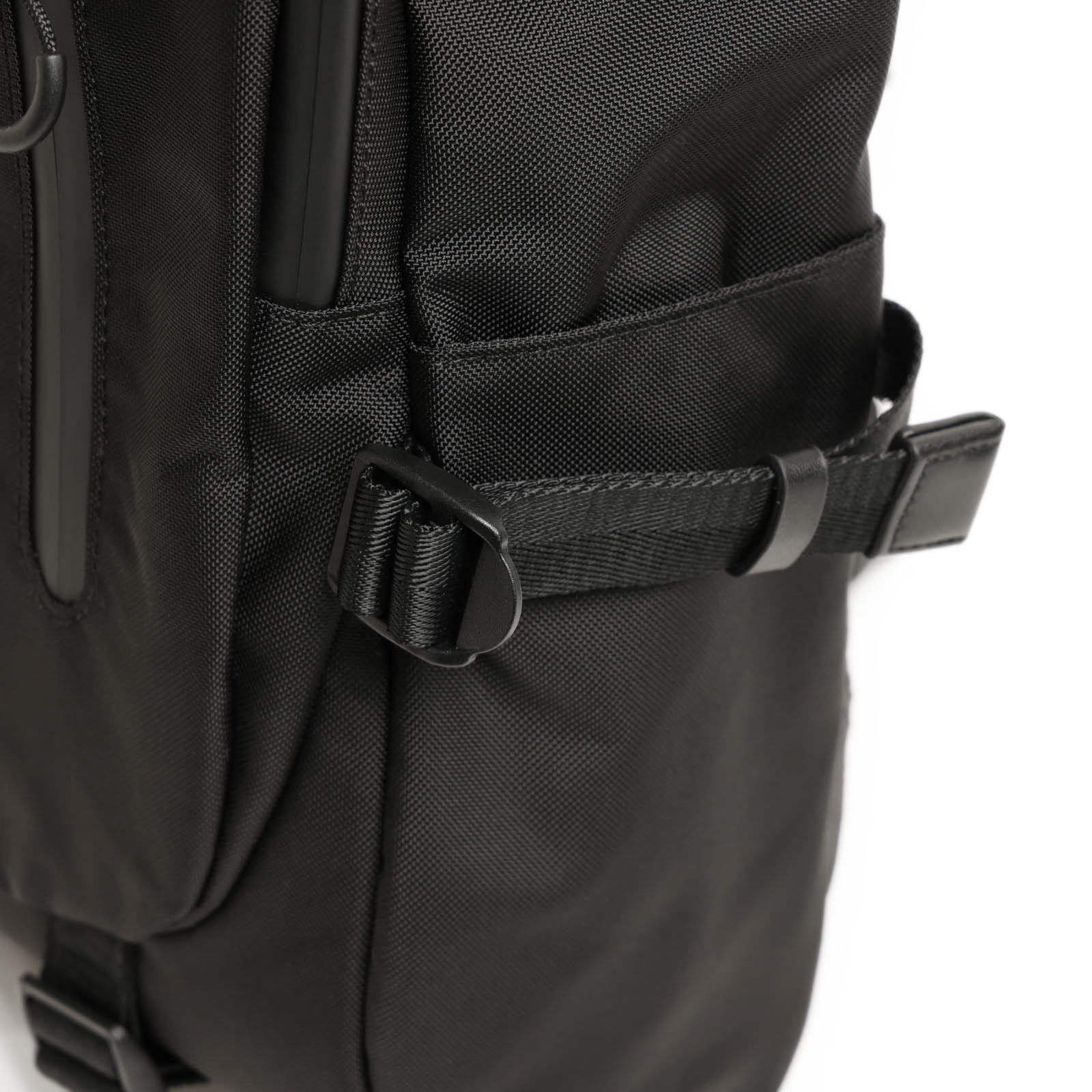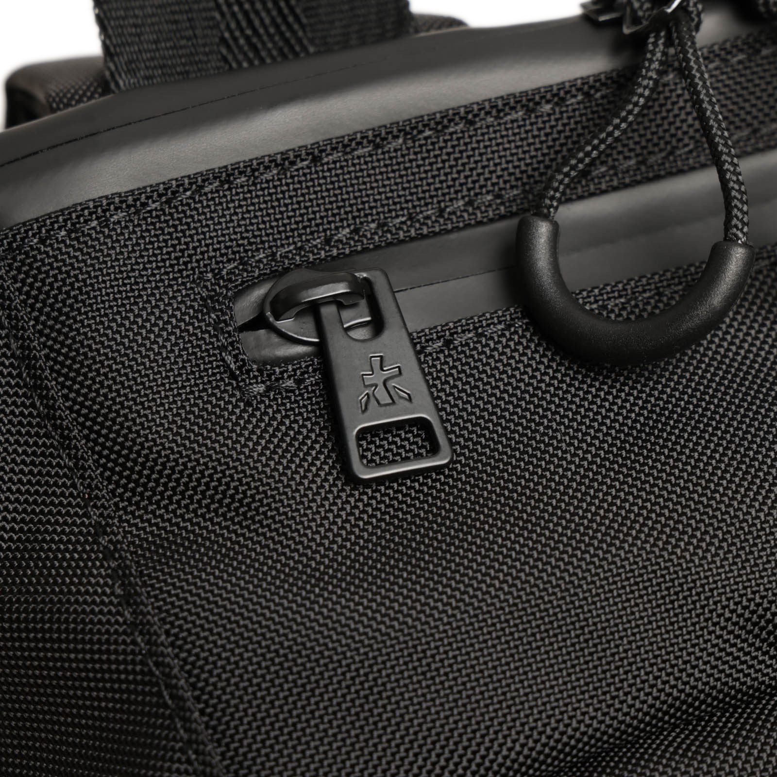 そんなボディの機能性を損なわない様に、ジップは止水仕様にしており、機能性もさることながら、ジッパーパーツを見えなくすることで、バッグ全体のミニマルな雰囲気を損ないません。