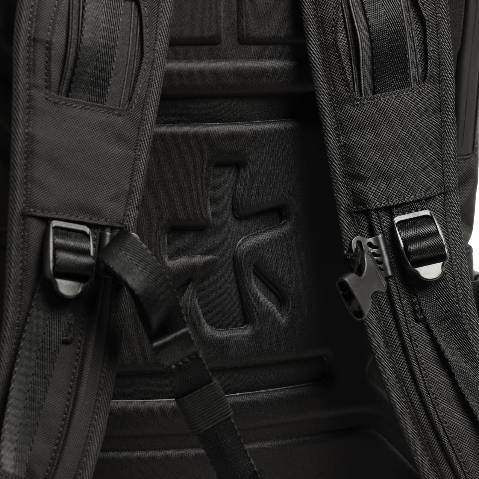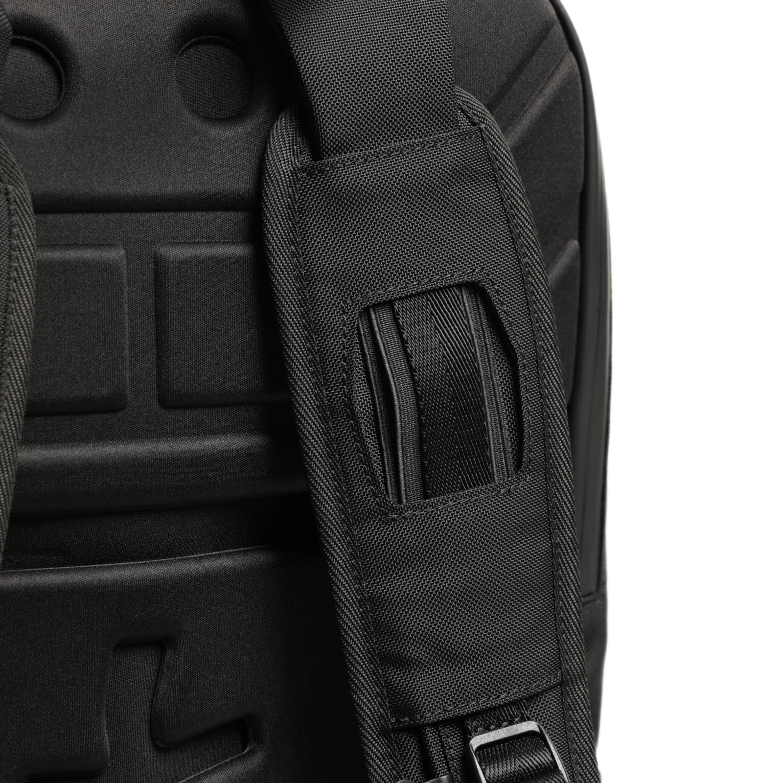 背面、ショルダーストラップにはEVA素材を入れ込むことで軽さをキープしたまま体に触れる面のクッション性を高め、快適な背負い心地をキープしてくれます。