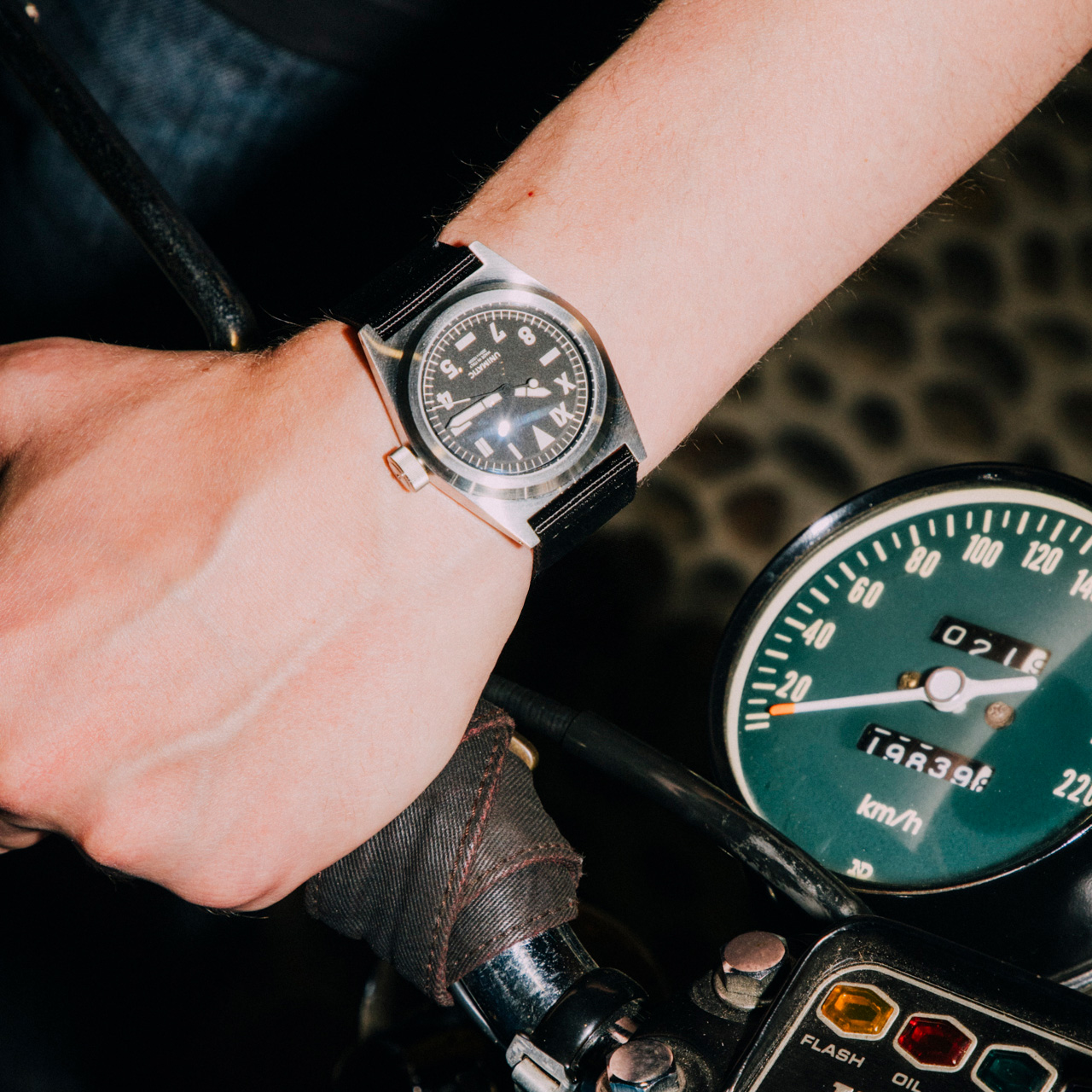 もちろん高い機能性はそのまま。海中や暗い場所で光る”スーパールミノバ?”を採用し、本格的なダイビングが可能な300m防水も備えております。また、水に強く、耐久性に優れるナイロンのストラップベルトを使用し、あらゆる状況下でも最高の性能を発揮します。 国内では菅原靴店とMINIMAL WARDROBEでしか買えないスペシャルな一本を是非お見逃しなく。