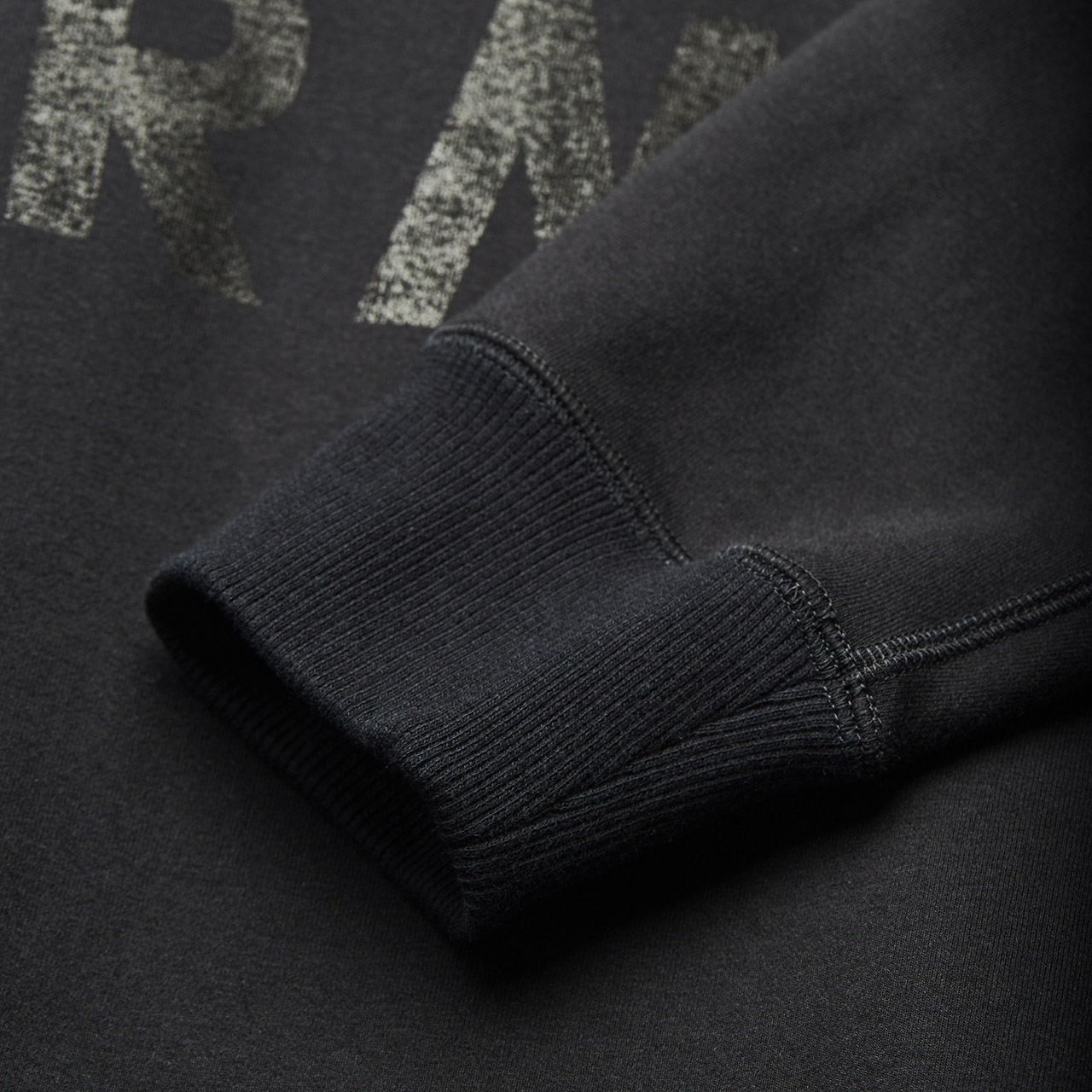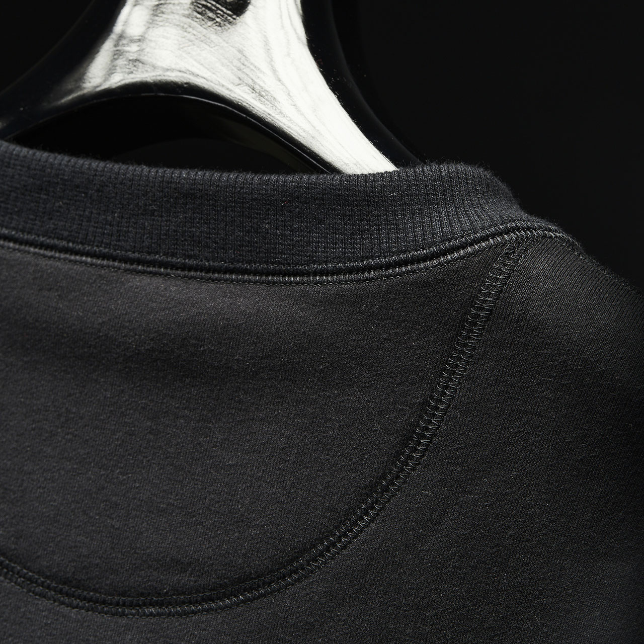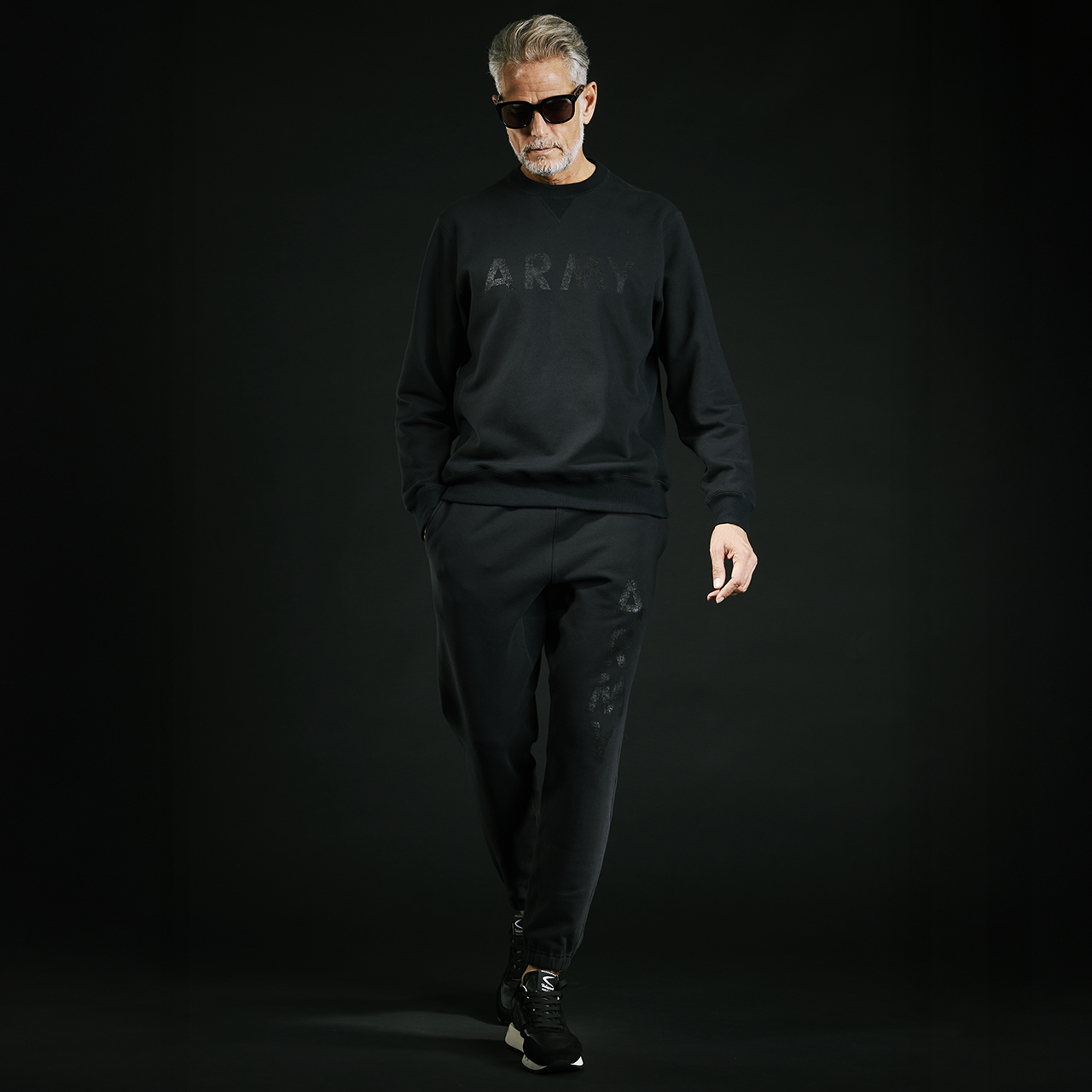 軍物とは思えない上質な風合いに仕上げています。今回は黒地に黒プリントで統一し、ZIPパーカー・R-NECKスウェット・ジャージパンツの3型を展開。