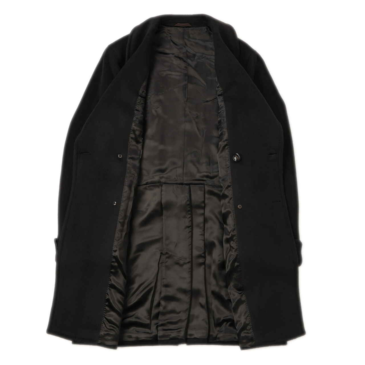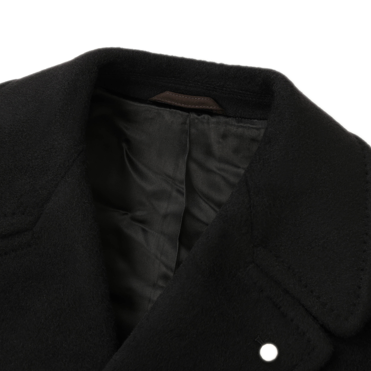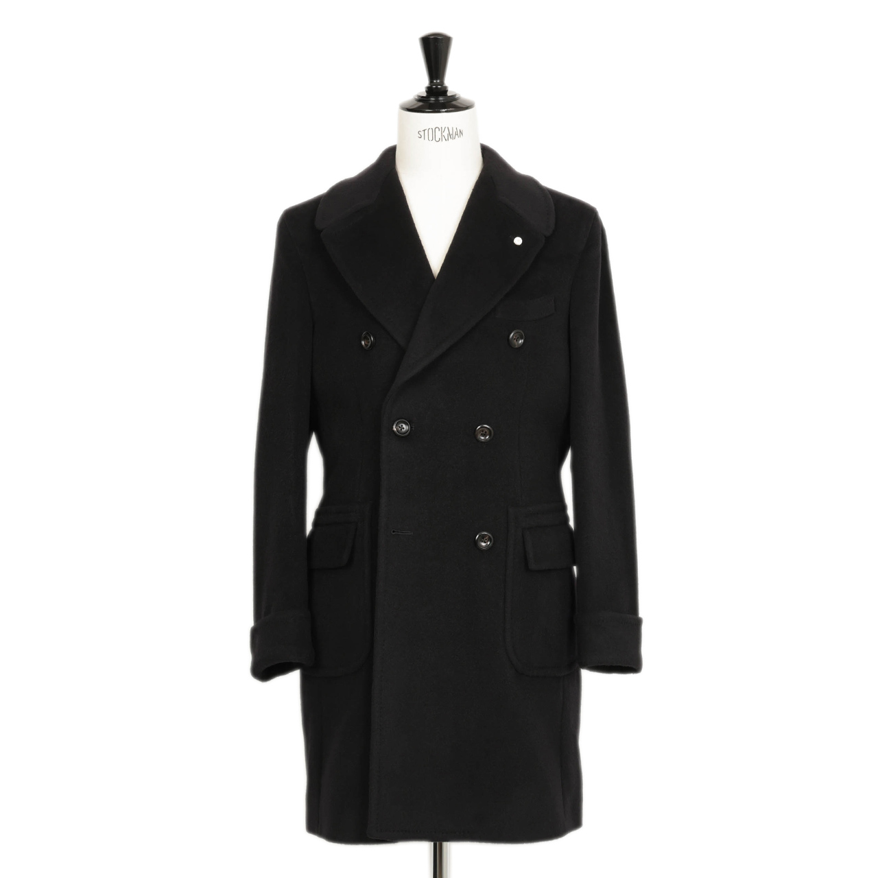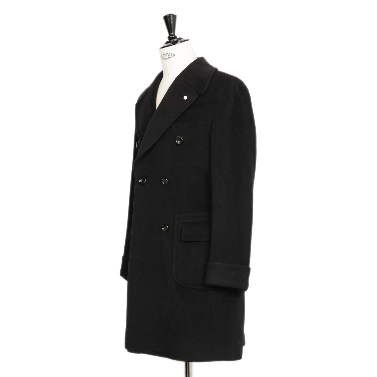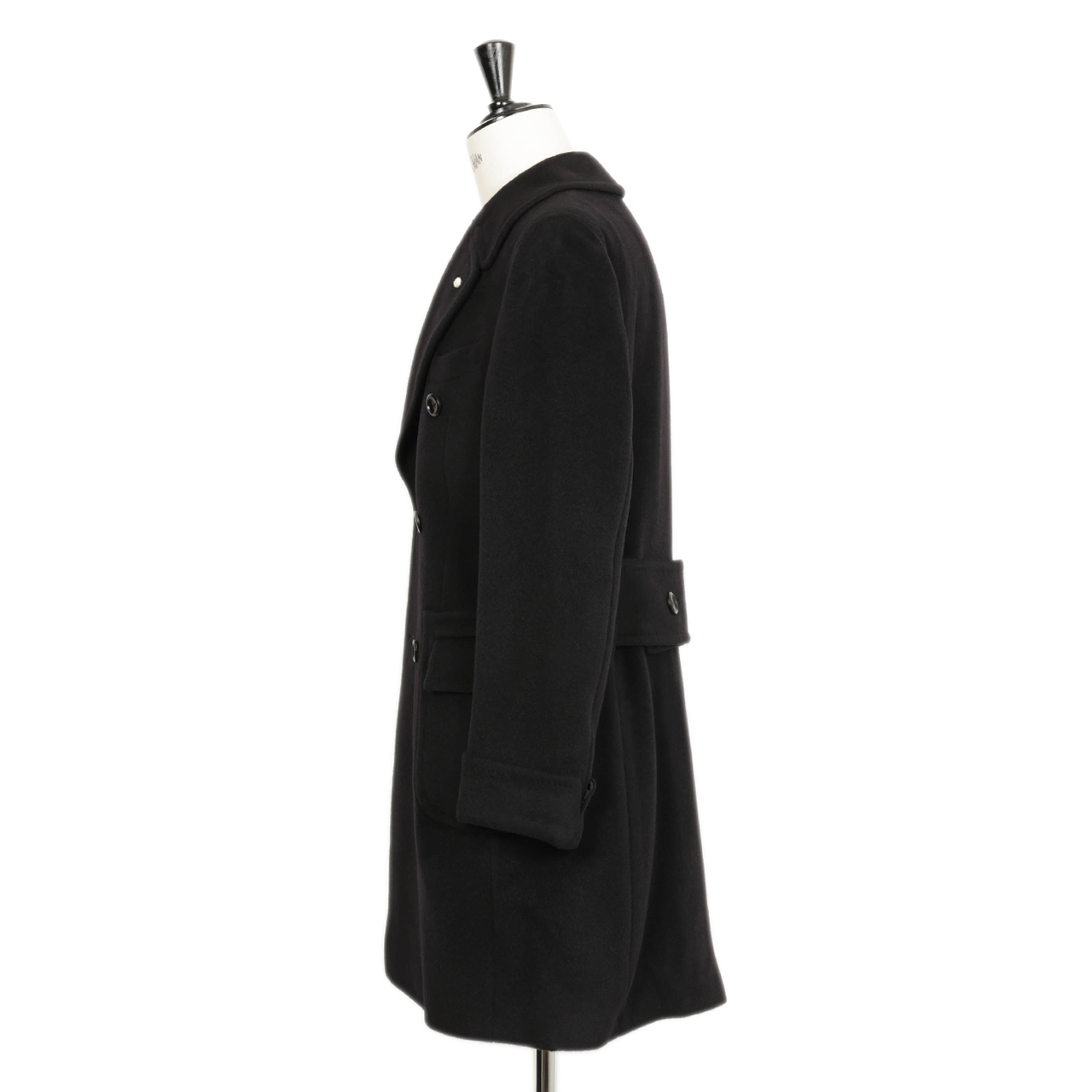 こちらはチェスターやステンカラー等と並ぶメンズのドレスアウターの定番「ポロコート」。幅広のラペル、背面のベルト、大き目のパッチポケットが目を惹きます。