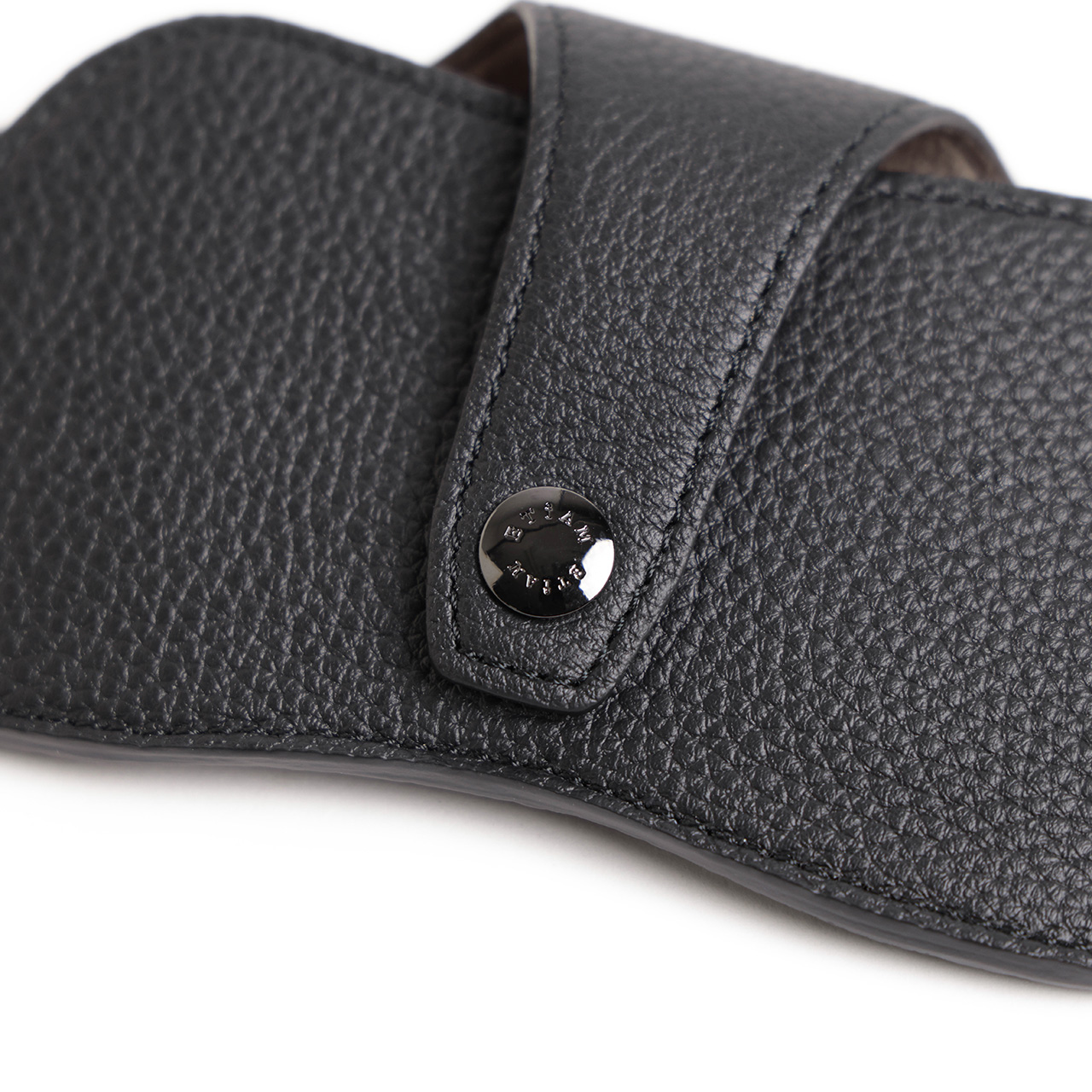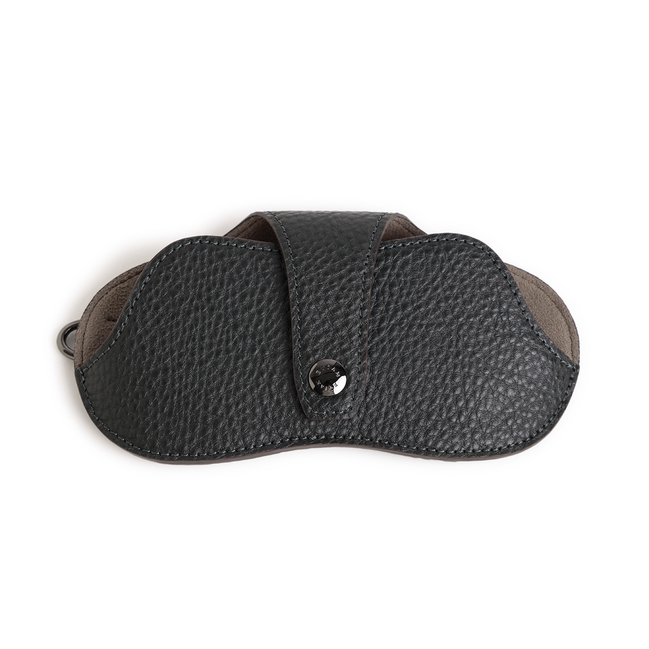 外装には、シボ感が魅力的な「シュリンクレザー」、内装・ベルト内側には、柔らかい起毛素材でレンズ・テンプルにキズをつけにくい「ポリエステルスエード生地」を採用し、外装と内装の間には、程よく柔らかい芯材を使用して、包み込むようにアイウェアを保護。