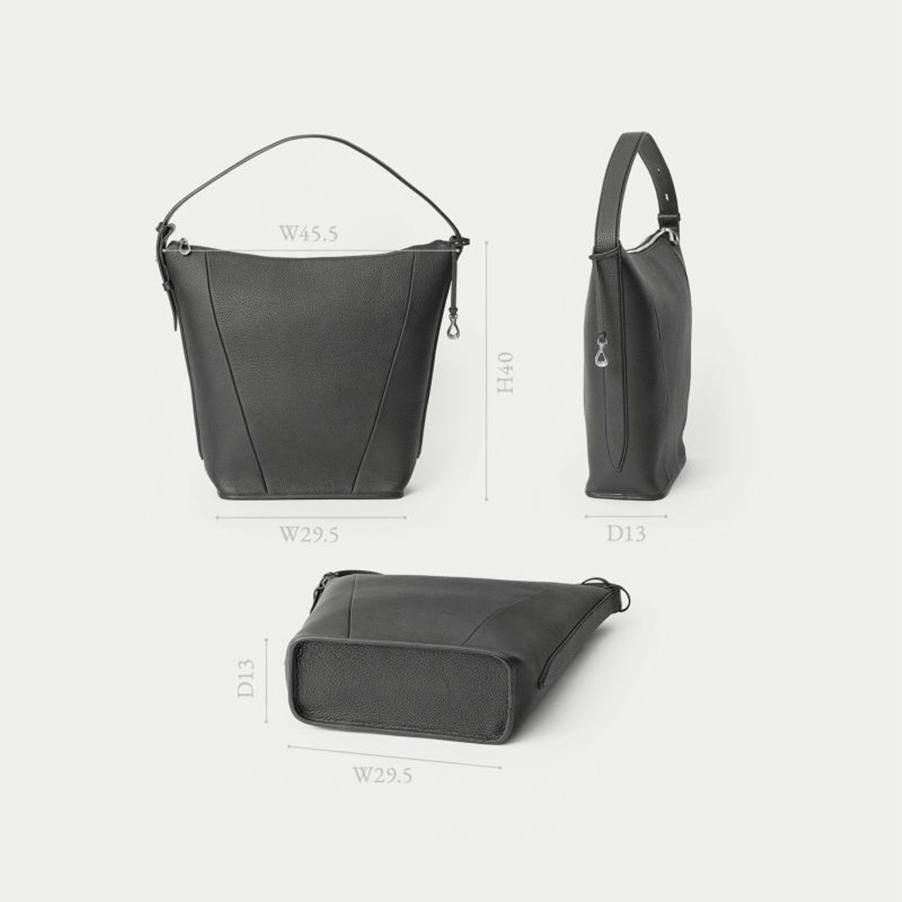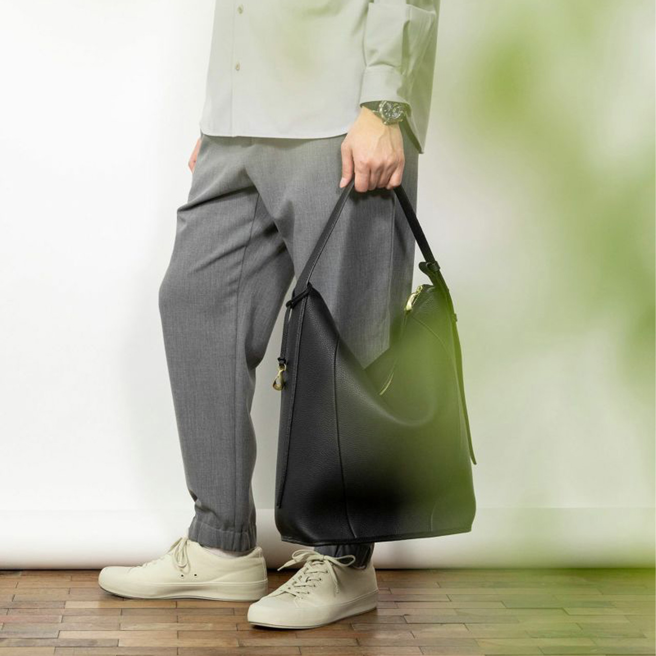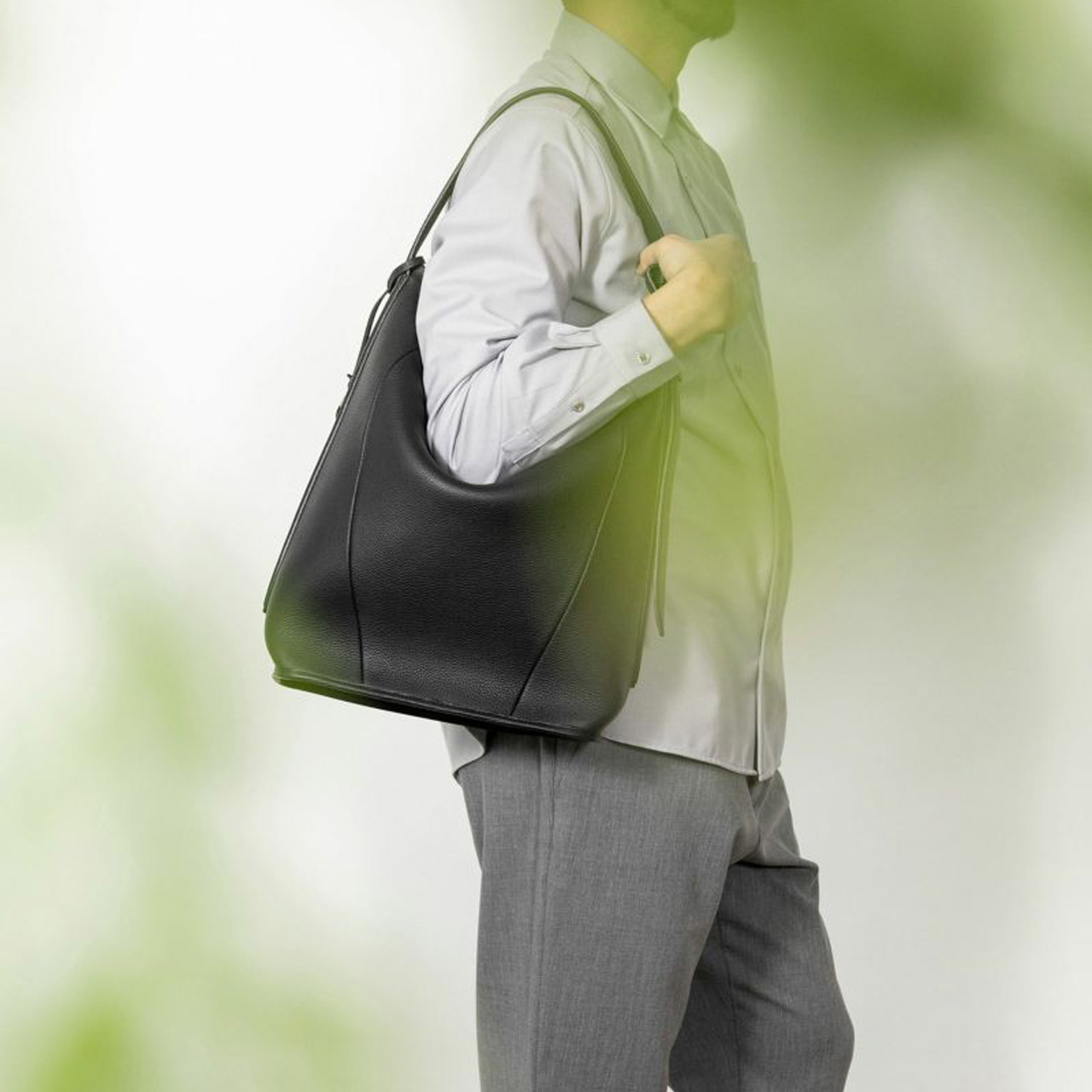 シンプルなデザインを追求することに焦点を合わせ、ハンドルを1本にした軽快さと、体に寄り添う快適さを併せ持たせた、美しいシルエットの縦型ホーボーバッグ。
