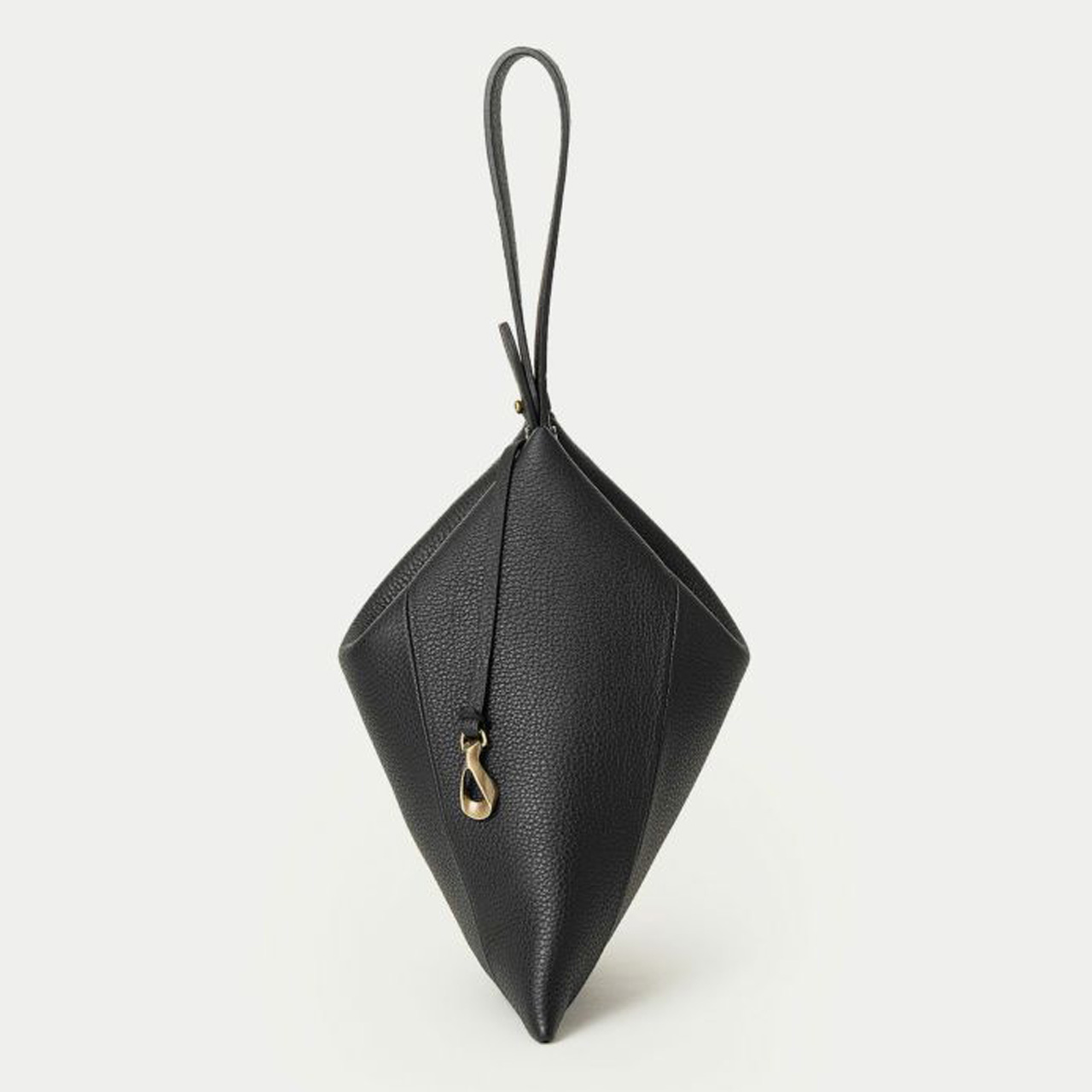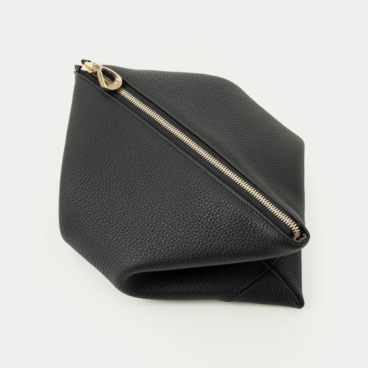 光を分散・屈折させて生まれる多彩な色を放つ光線のように、何気ない日常に鮮やかな色彩の輝きを添えてくれる、ユニセックスなデザインのトライアングルポーチ。 ボディとストラップの接続用に開発したオリジナル金具により、たわみが美しい巾着のような上部のシルエットを創り出し、トライアングルを想わせる洗練されたフォルムへと導いています。