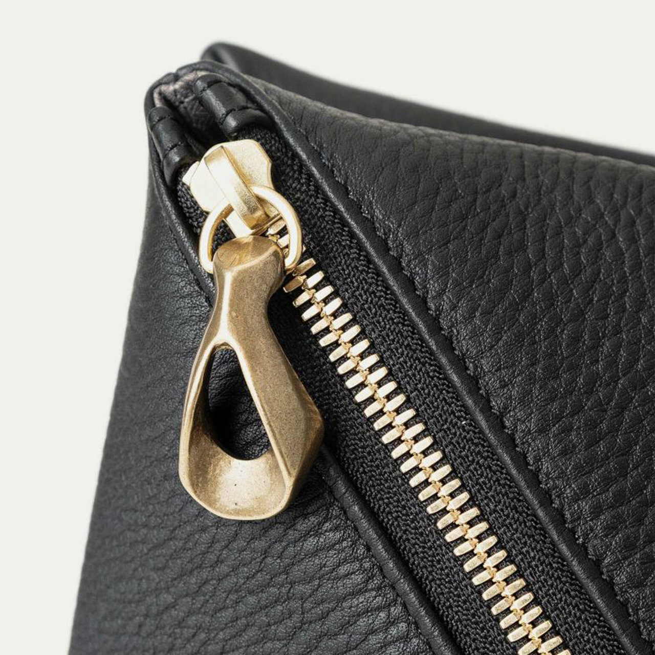 シボ感が美しい「シュリンクレザー」のボディに、柔らかくて程よいハリのある芯材を用いることで、型崩れしにくくキレイな形状のまま長く使いこなせるのも魅力。
