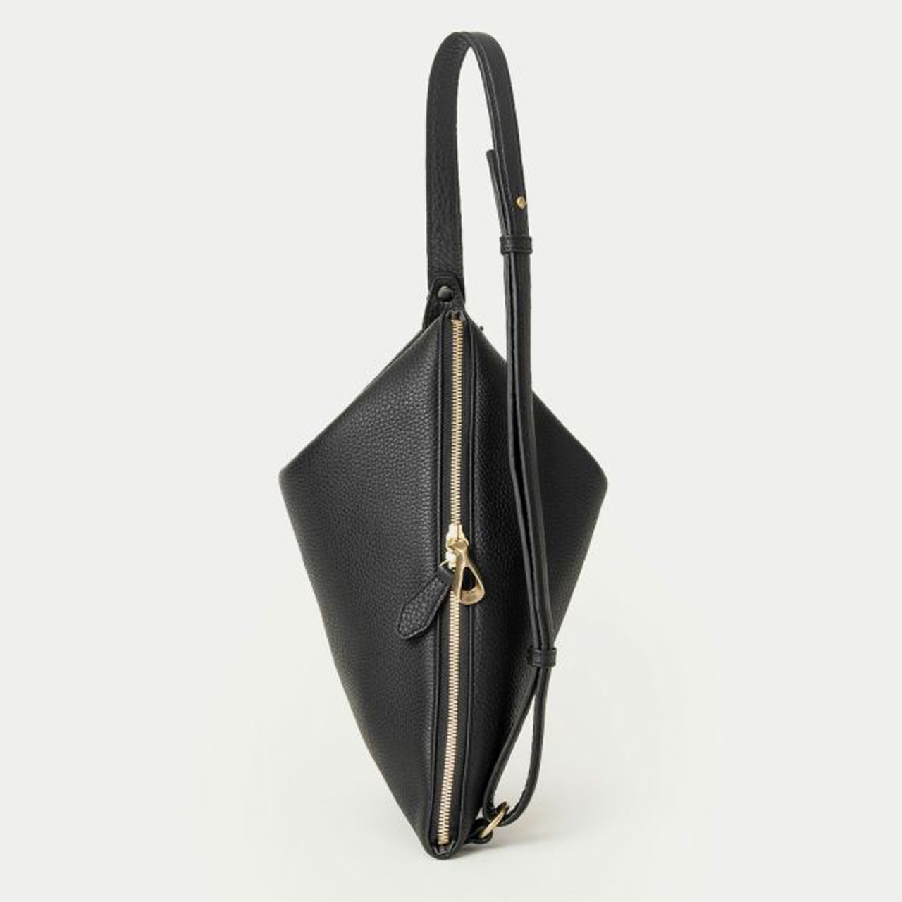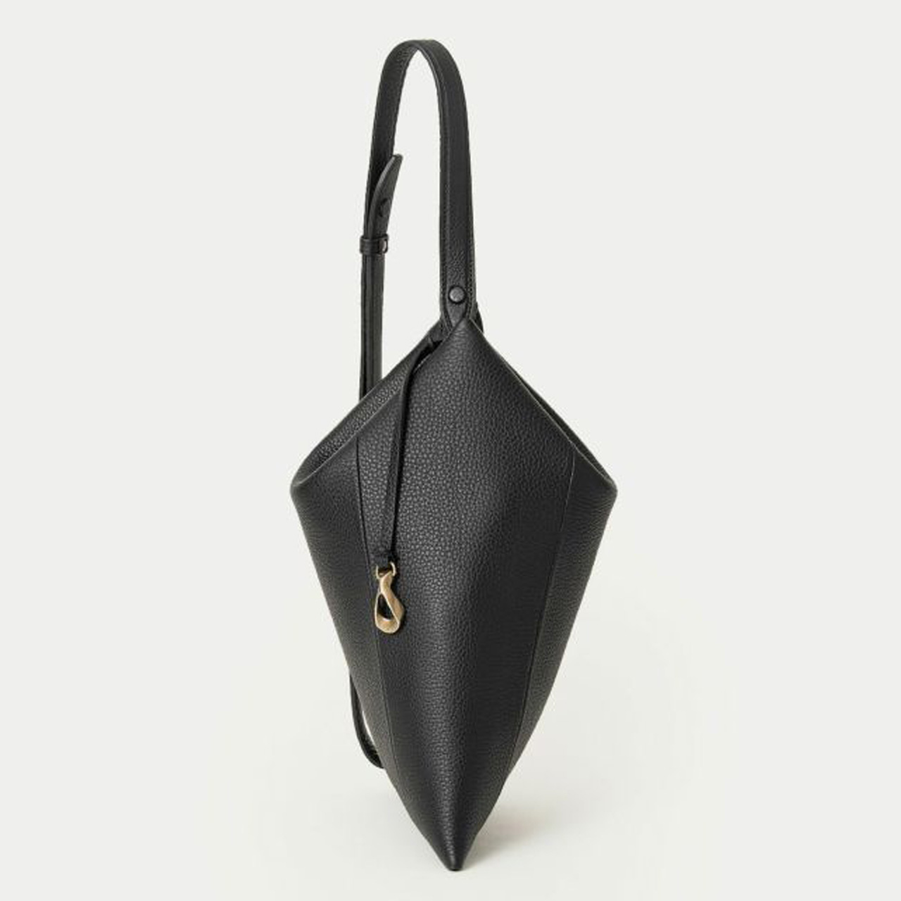 まるで幾何学模様の頂点をイメージさせるようなシャープなフォルムが、何気ない日常の装いに印象的な存在感を添えてくれる、トライアングルショルダーバッグ。