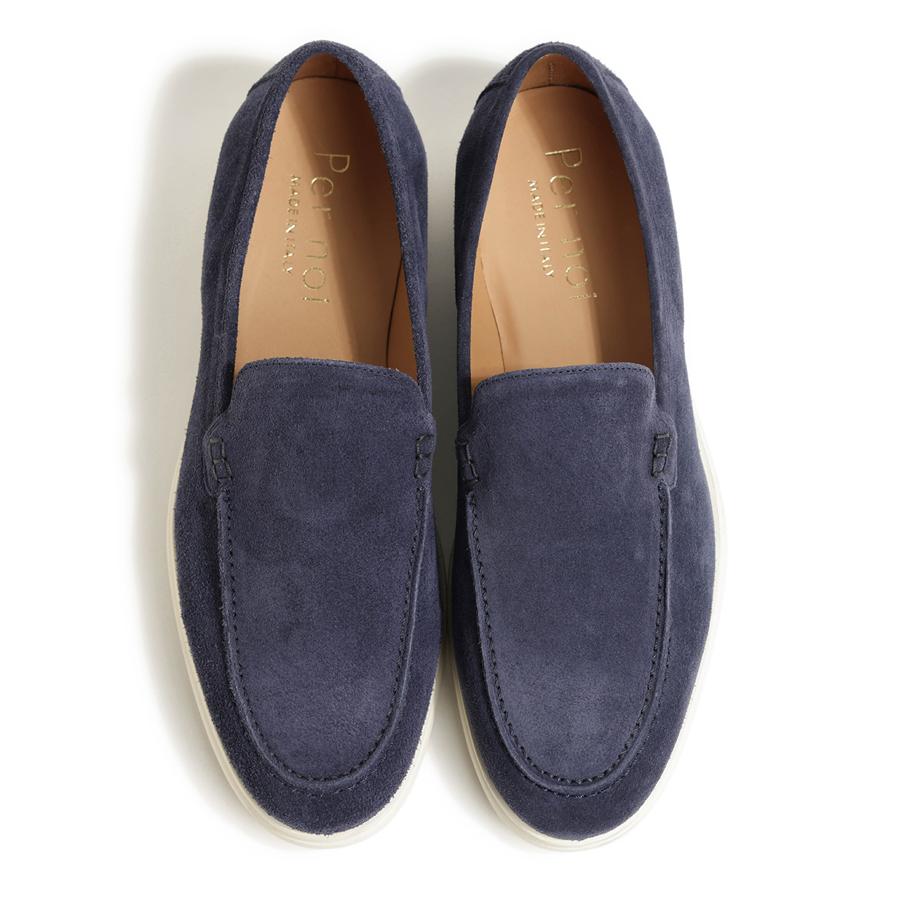 Per noi ペルノイ スニーカー スリッポン レザー スエード Uチップ ラバーソール LOREDANO BLU/ネイビー