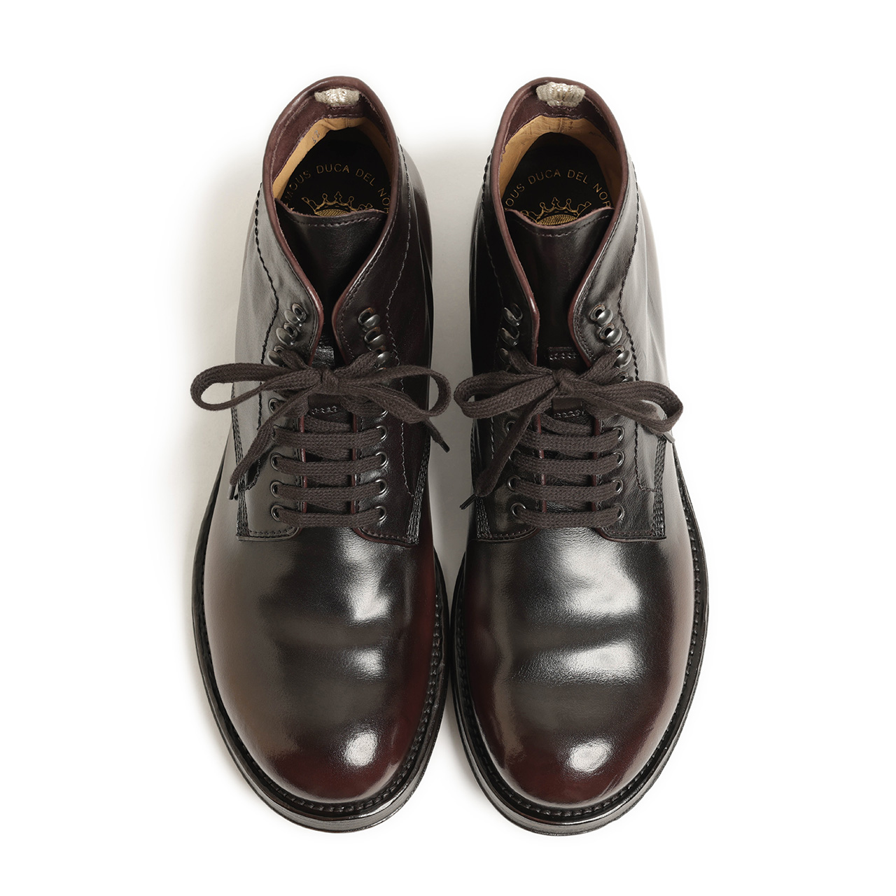 更に一足一足熟練した職人の手によってボルドーとダークブラウンでのムラ染めが行われており、立体感のあるカラーリングがよりこの一足を魅力的にしています。