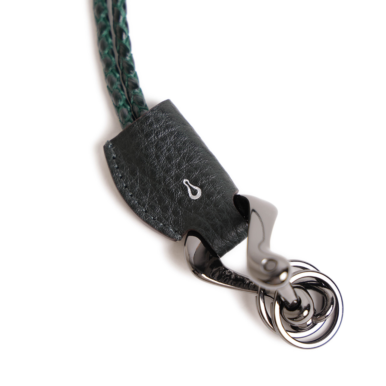 シボ感が美しい「シュリンクレザー」の接続部へと繋がるストラップは、レザーを編み込んだような重厚感がありながらも、発色が良く強度が高いポリエステル製で、色落ちもしないので安心して使えるのも魅力です。