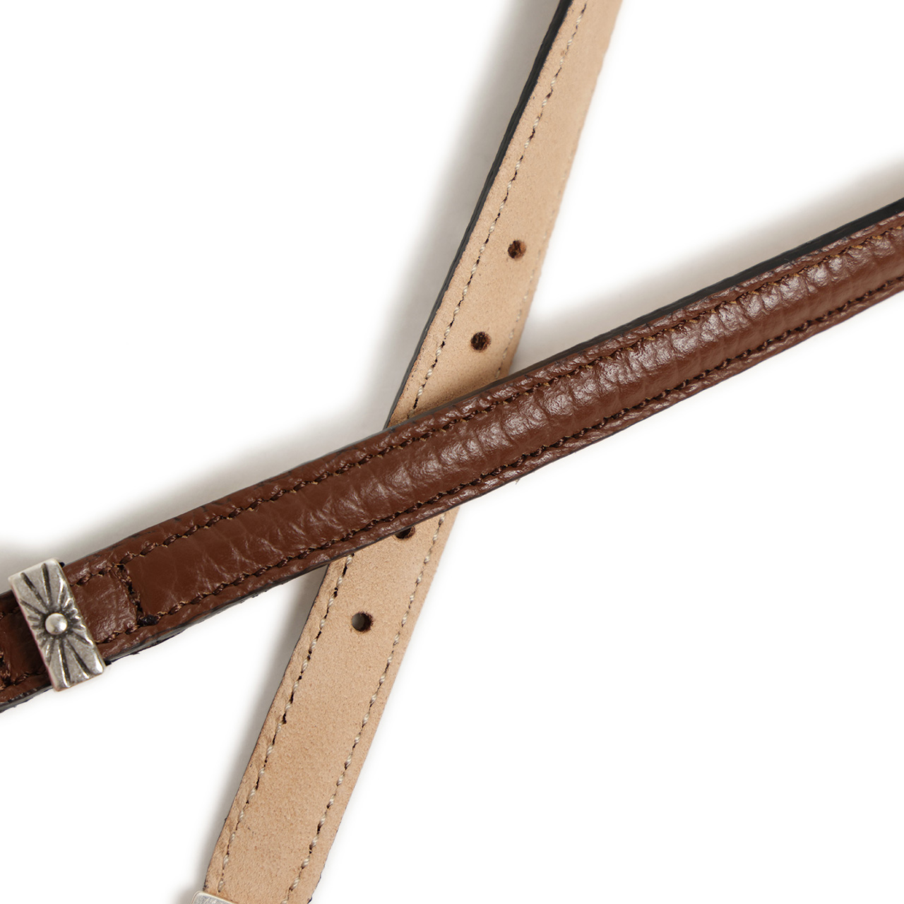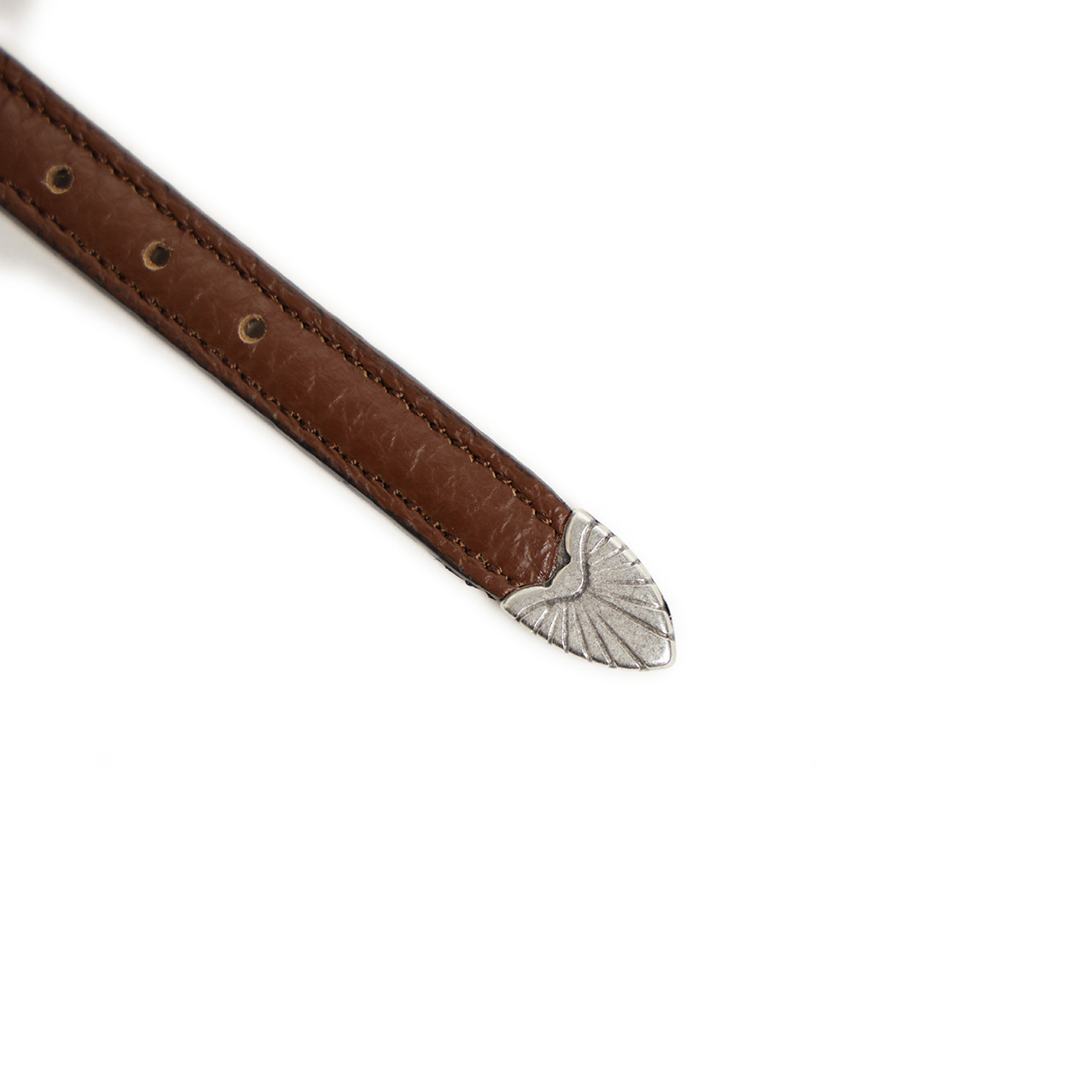 素材には2種類のレザーをご用意。シボの入ったレザーはもちっとしてソフト、上質なレザーならではの自然な艶が感じられます。一方リザード型押しを施したレザーは艶が強く感じられ大人の色気を演出してくれます。遊革、剣先部分にはウエスタン調のバックル、プンターレを付け春夏の手元にアクセントをプラスしてくれるデザイン。