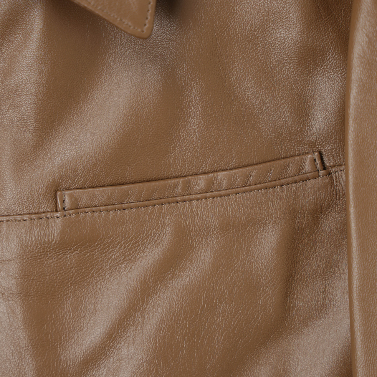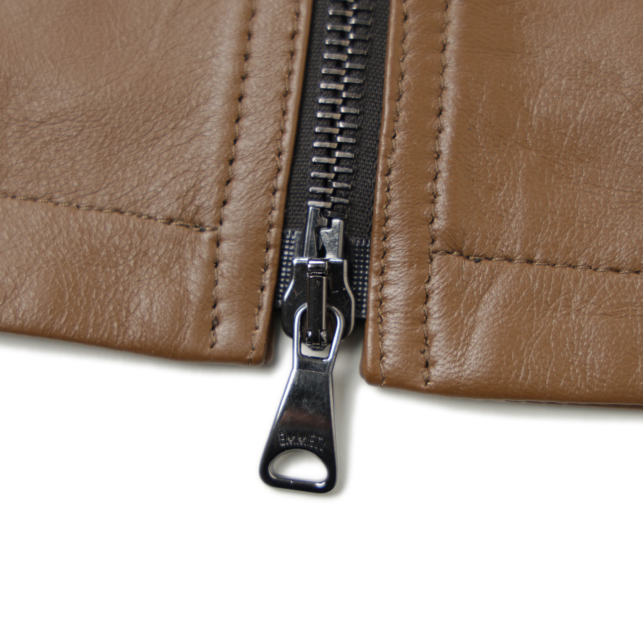 程よいハリがあり、きめ細かく滑らかな革質、そして絶妙な風合いの艶は着る方に高揚感を、見る方には上質なレザーが醸し出す品の良さを感じさせます。