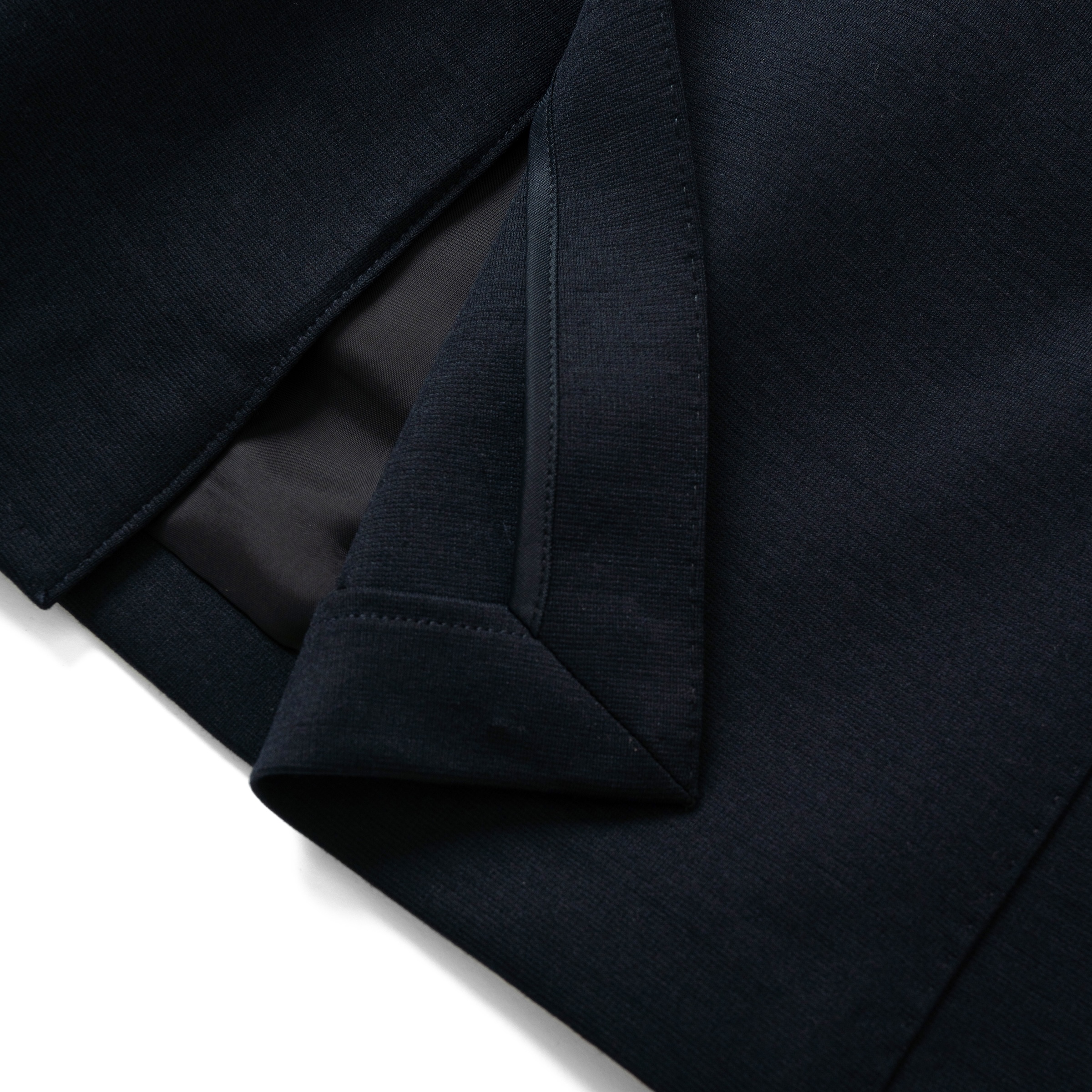 「Duplex Wool Jersey」は、ウール・ナイロン・ポリウレタンを掛け合わせた特殊な糸を、独自の両面編み機で“高密度”に編み上げた「ポンチ素材=ダブルジャージー」が特長。