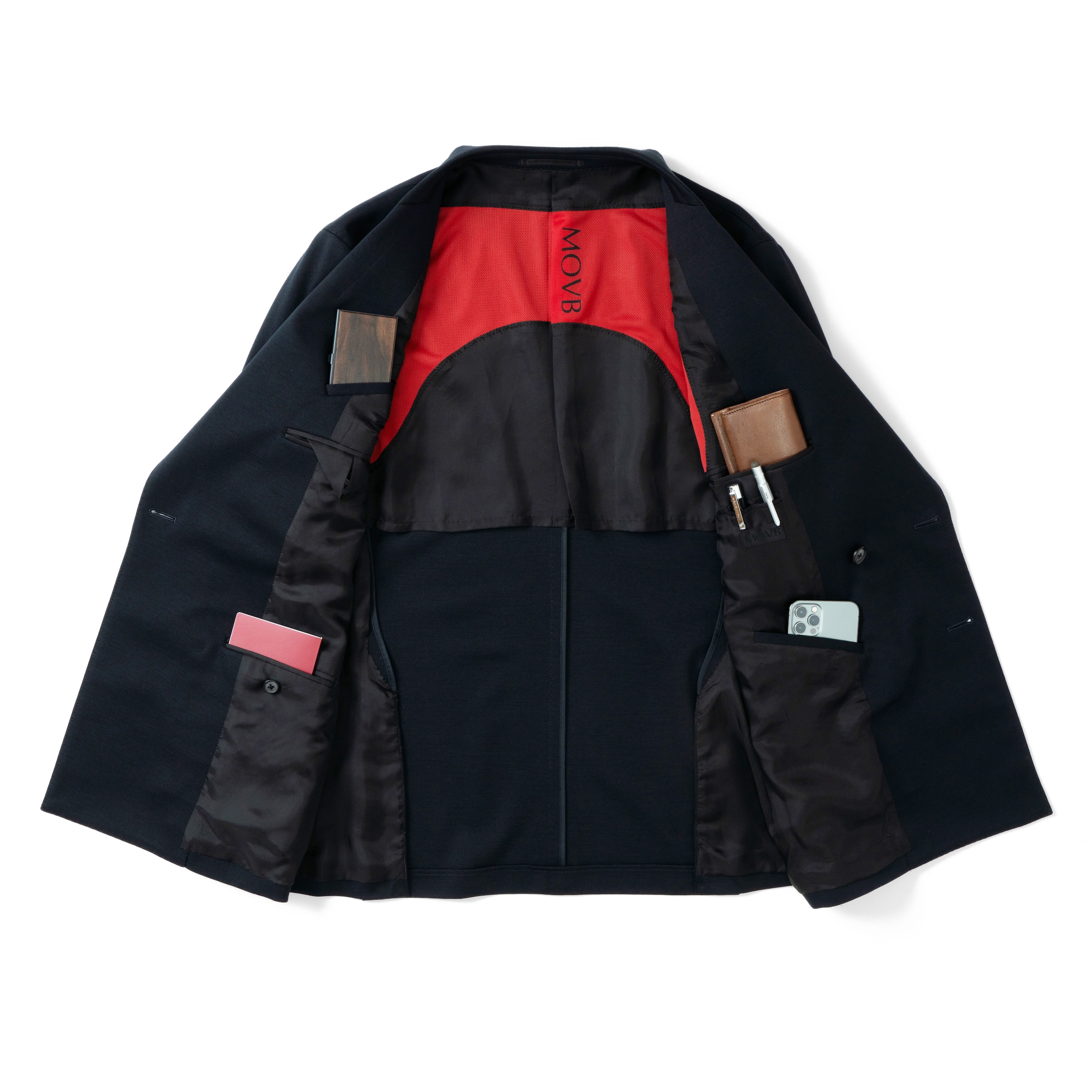 このテーラードジャケットは、オールシーズン着用できるように設計されており、MOVBの「想像を超える快適さ」を体現するセットアップジャケットとしてお勧めです。