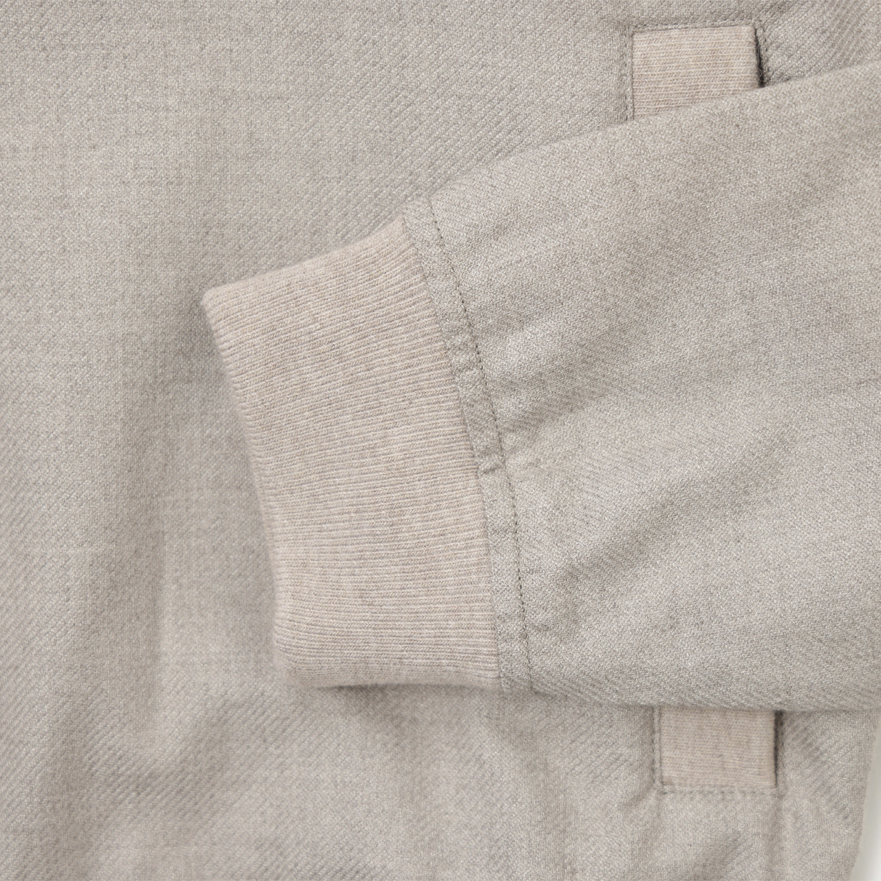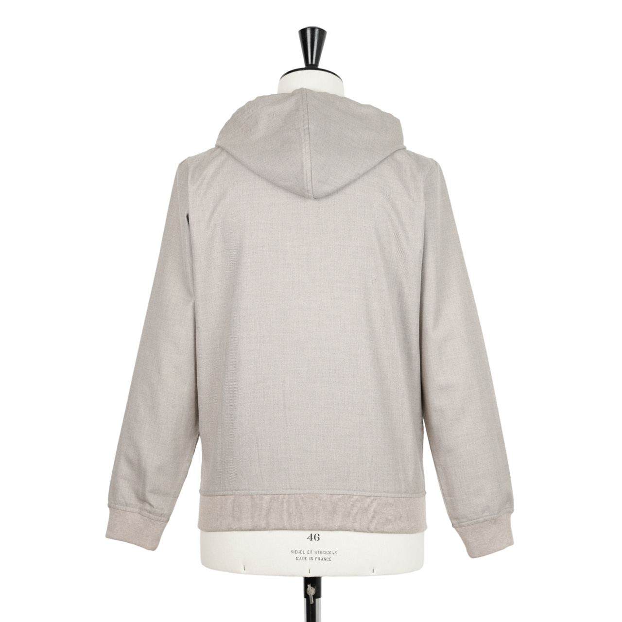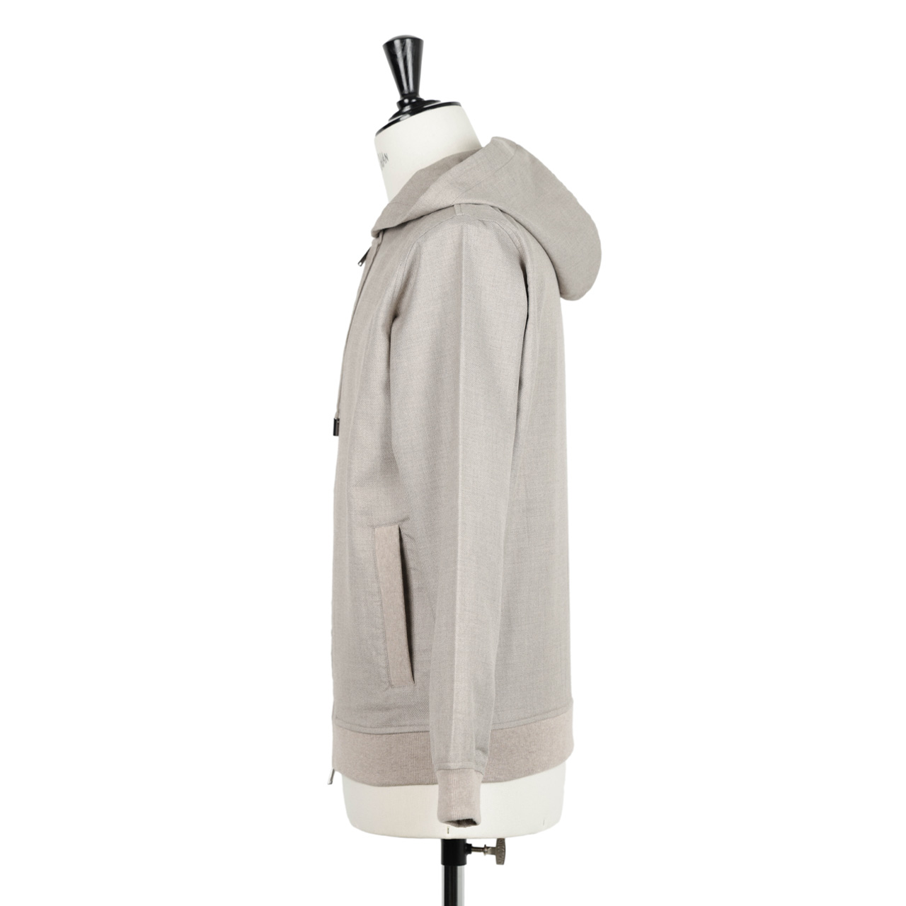 薄手で軽量、そして上質な素材ならではの滑らかな肌触りと自然な艶が特徴的な素材感。程よいハリもありパーカーでありながらエレガントな雰囲気を感じさせます。