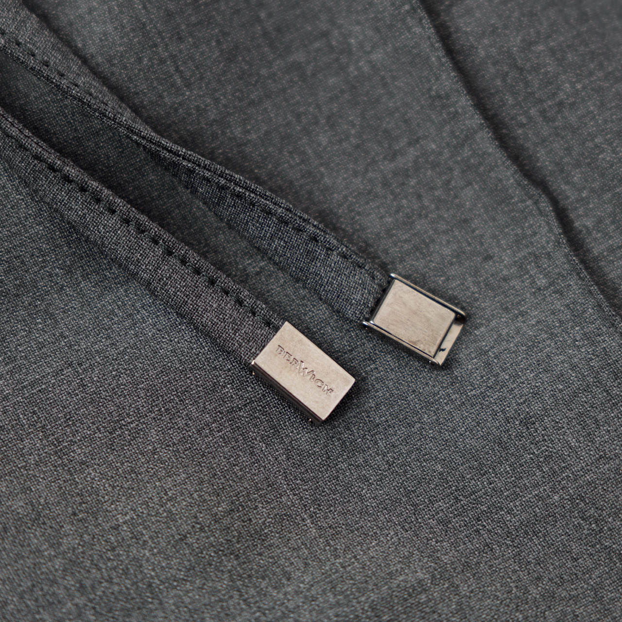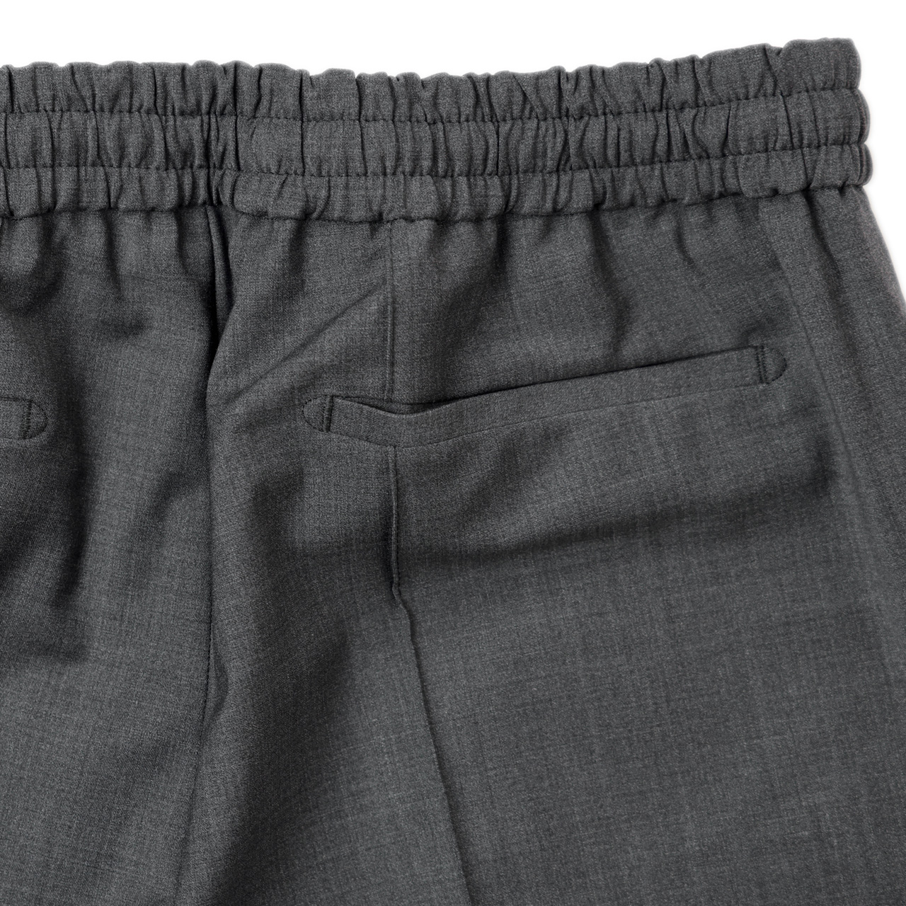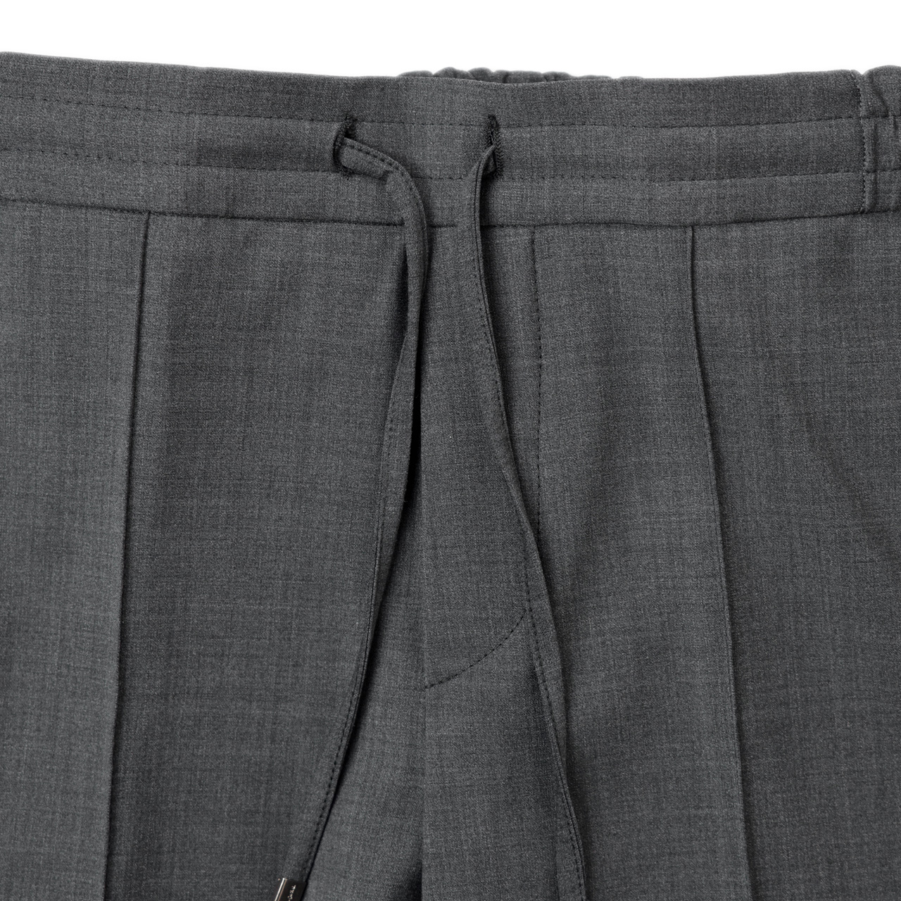 デザイン面では前回同様永久クリースを前後に入れ、しっかりした印象を損なわずに履いていただける一本に。ウエストはドローコード付シャーリング仕様。、フロントはノンファスナー仕様に。