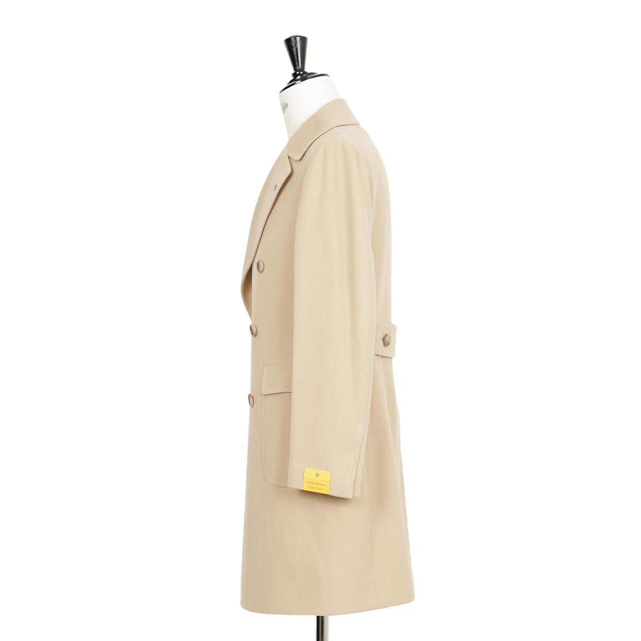 素材はTAGLIATOREではコートの定番生地と言ってもいいウールカシミヤを採用。柔らかく、軽量なウールとカシミヤの素材感。そして素材が本来持つ艶が感じられる風合い。若干起毛感のある生地にすることで全体の印象が柔らかく感じられ、シックになりすぎないのもポイント。