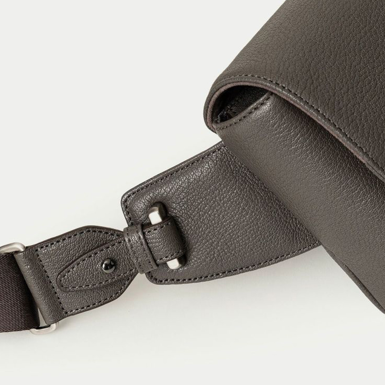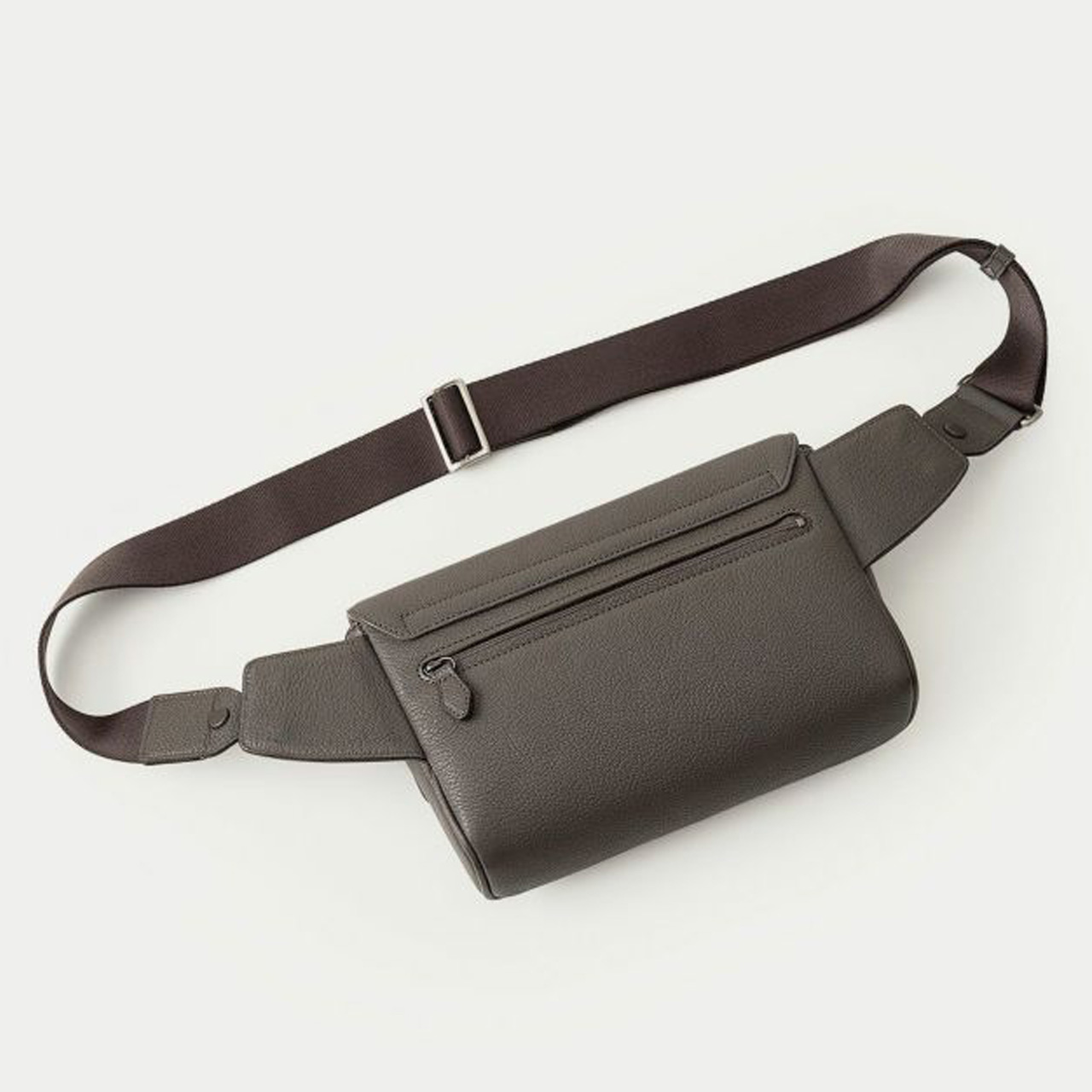 海外の有名メゾンでも愛用されている、フランス・ジュリアン社製のゴートレザー「シェーブル」を纏わせたボディは、前面とマチの間・背面と底面の間の繋ぎ目をなくすことで、装着時に体あたりが柔らかくなる機能性も実現。