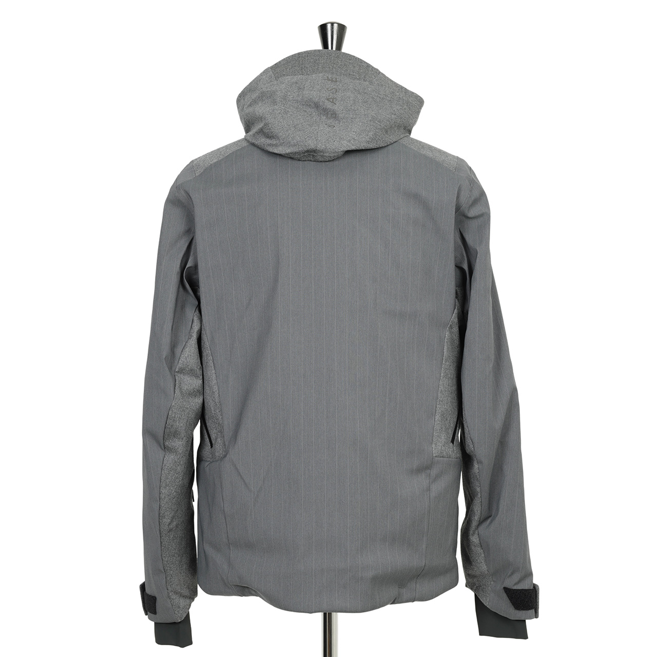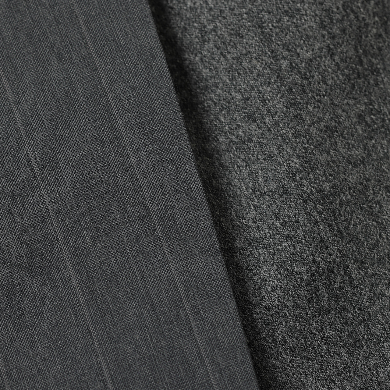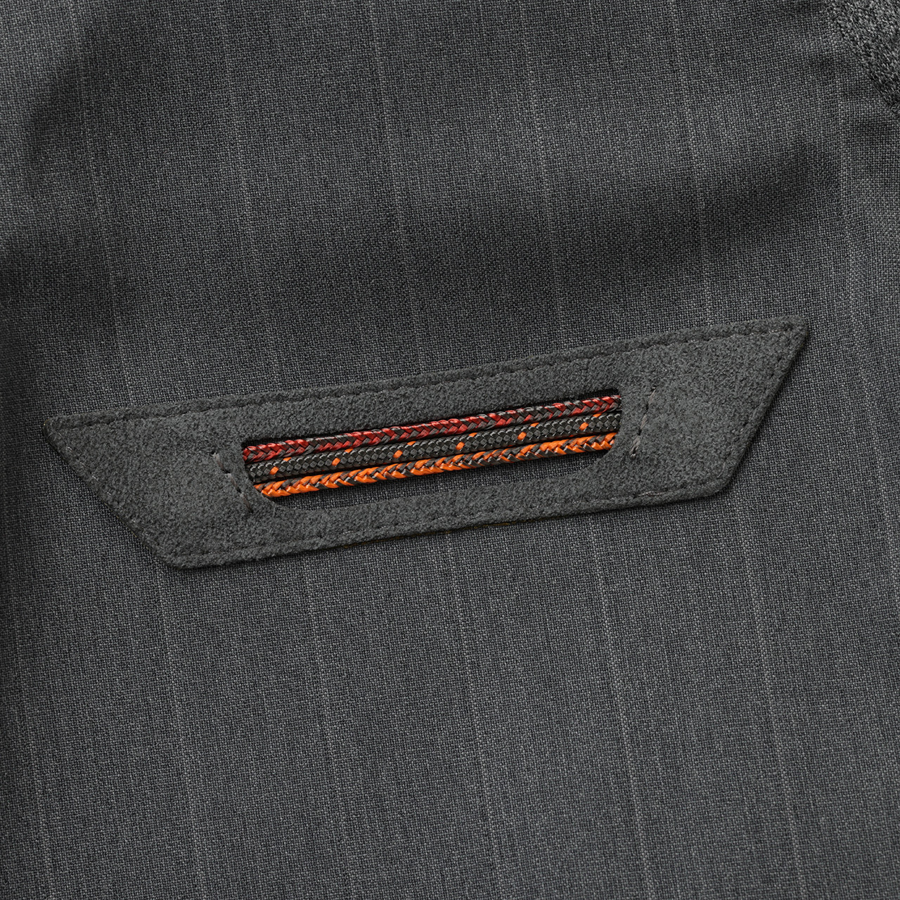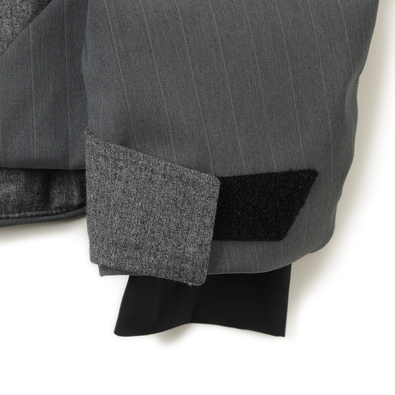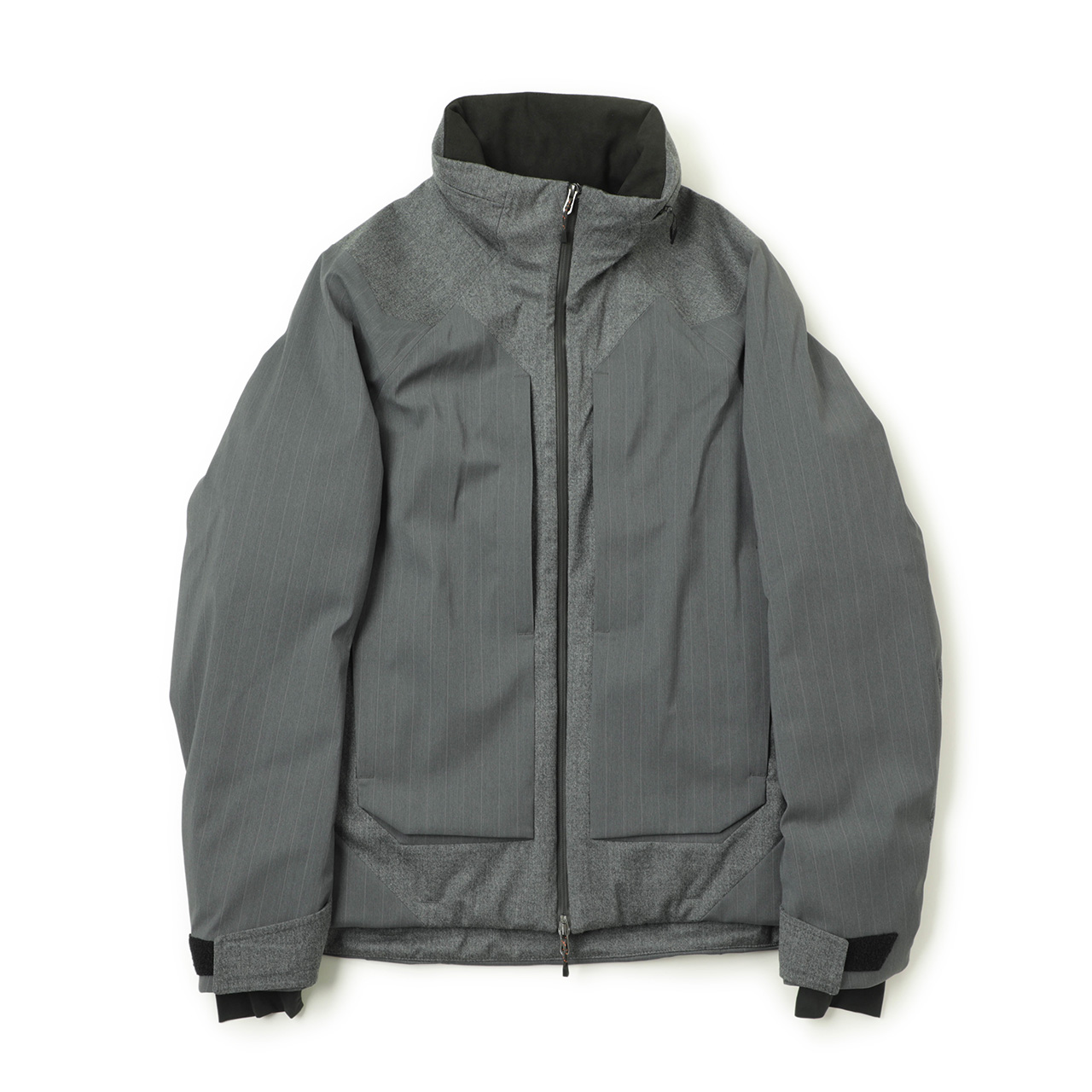 ストライプ地はウール×ナイロンをベースにストレッチを混紡しており、後身頃、アームと特に高い伸縮性が求められる部分に使用。着る方の動きにしっかりと対応してくれるので快適な着心地を実現します。カラーリングも同色のストライプを走らせることで程よいアクセントをプラスしています。