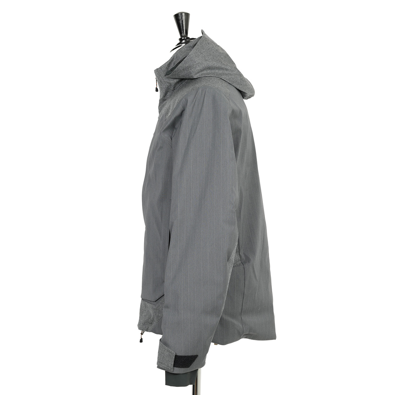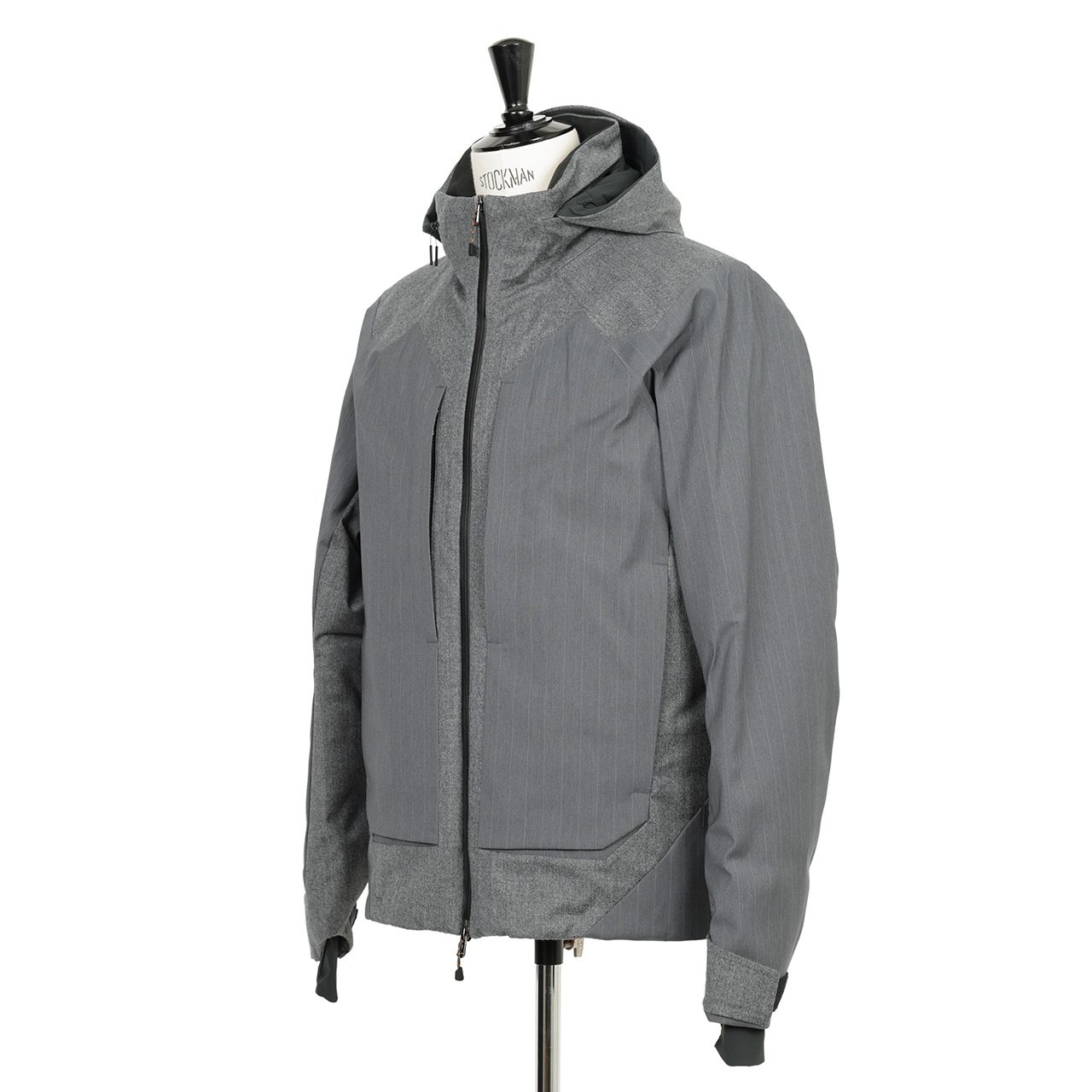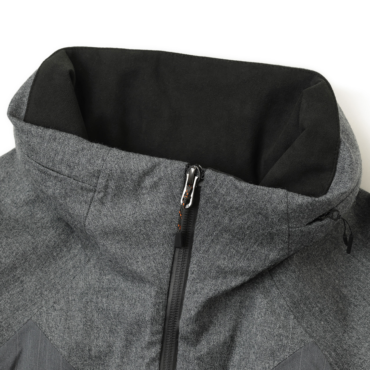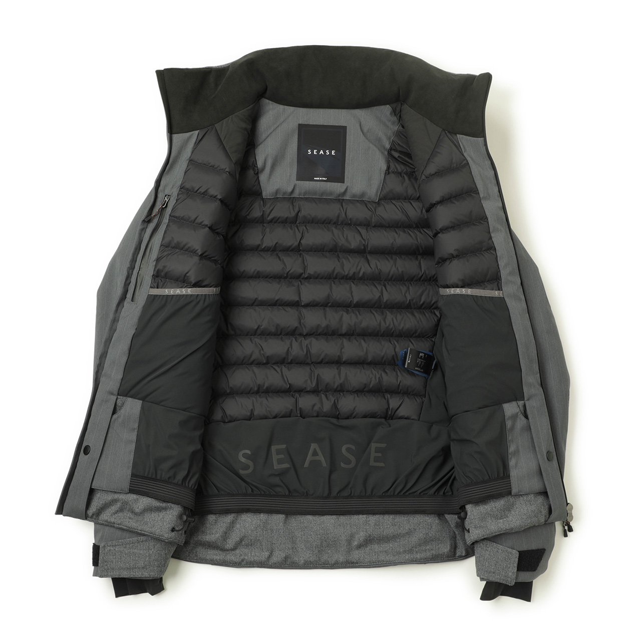 スポーティなアウターには通常使用することを想定していないウールベースの生地を贅沢に、大胆に使用したらしさあふれるSEASEの一着。