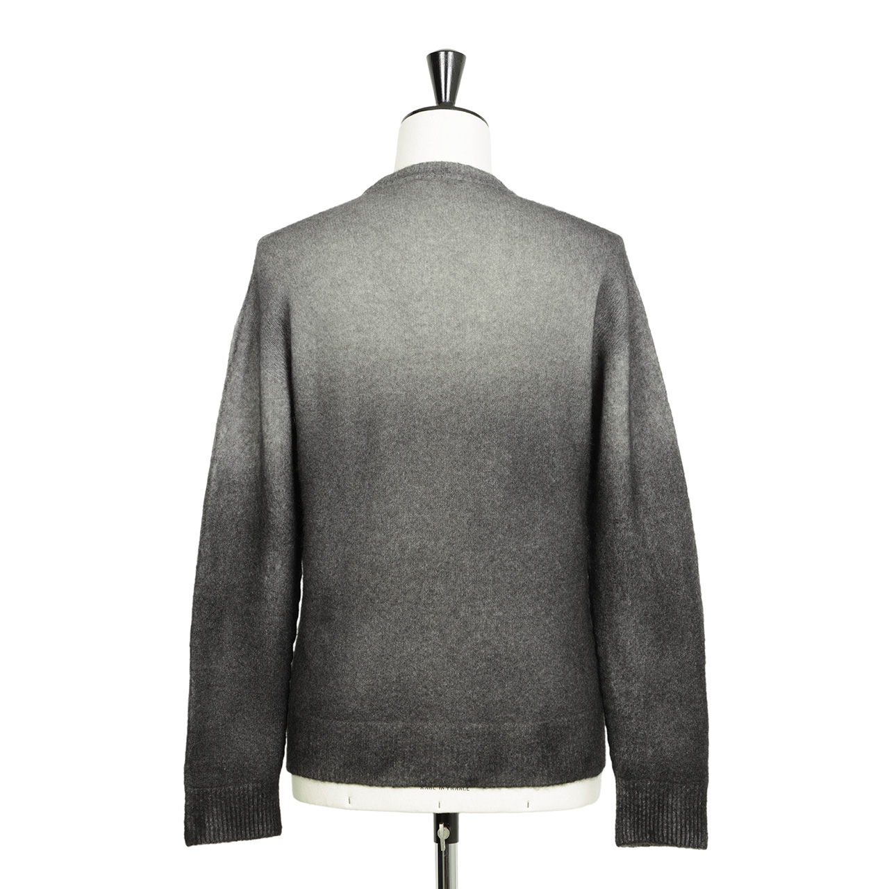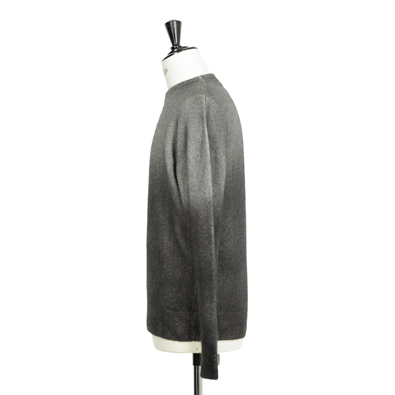 こちらはユニークなカラーリングが光るクルーネックニット。