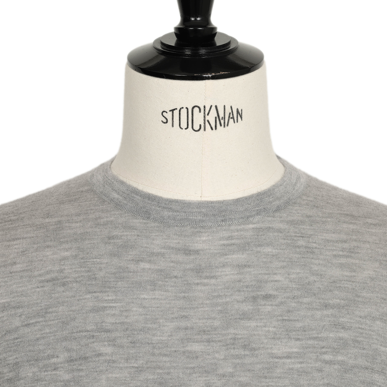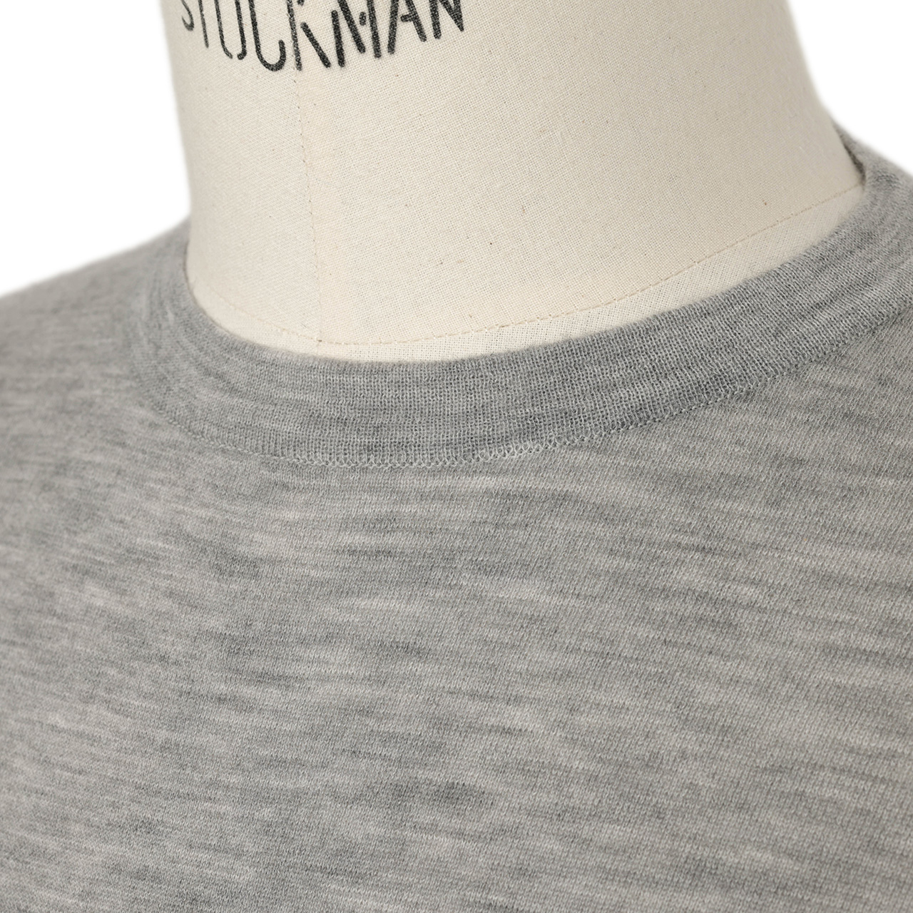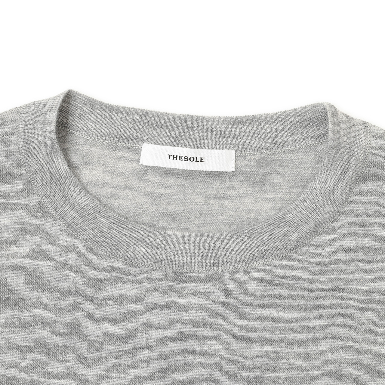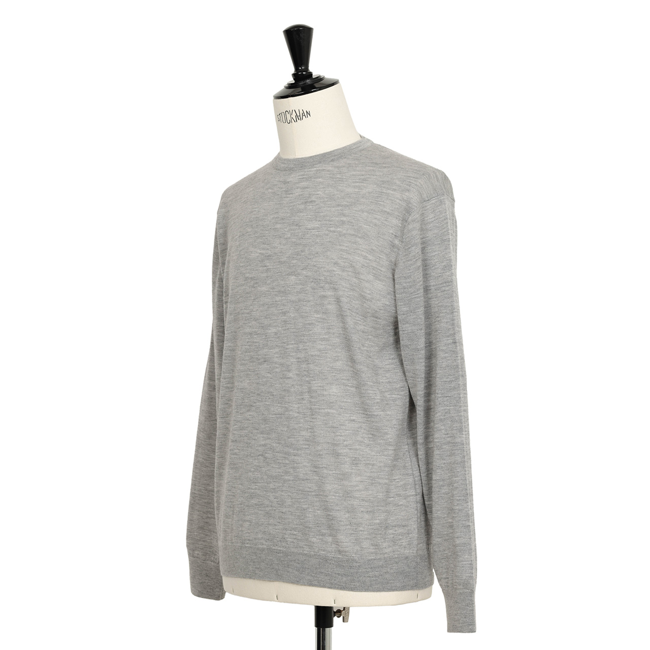 世界最高クラスの繊維長と細さを誇る梳毛糸を用い、極めて繊細で高度な技術で編み立てることにより薄さと強度を兼ね備えた美しいクルーネックニットが生まれました。