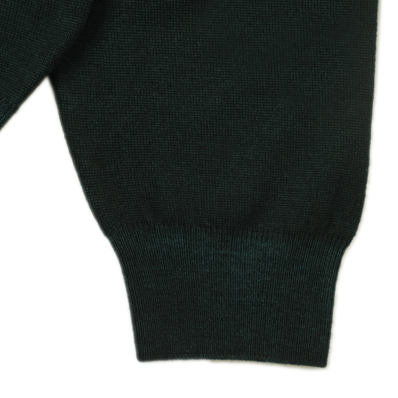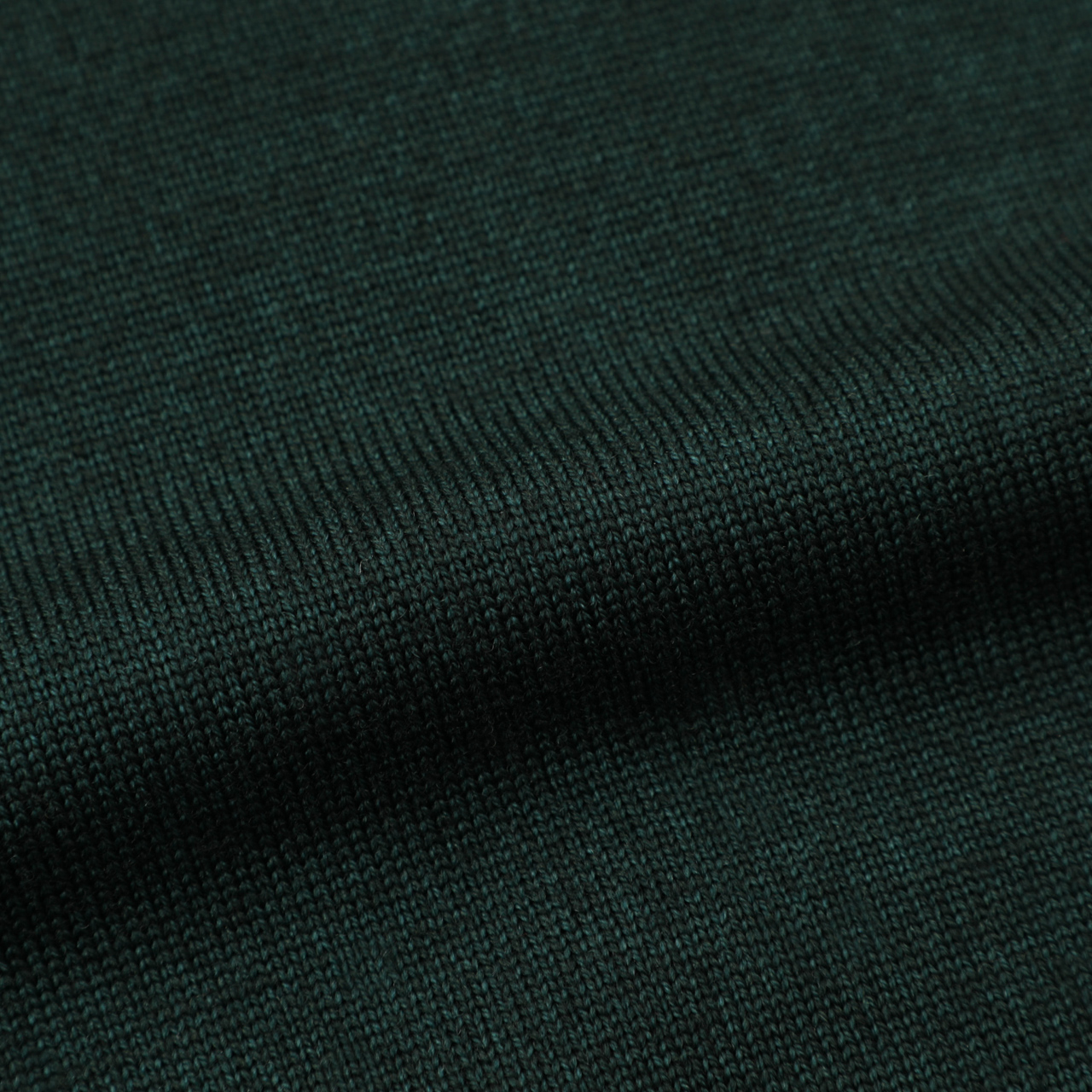 素材はウール 100%。柔らかく滑らかなエキストラファインメリノウールを使用した本モデル。薄手の生地感で、一枚での着用は勿論、レザーやジャケットのインナーとしてもお使いいただけます。