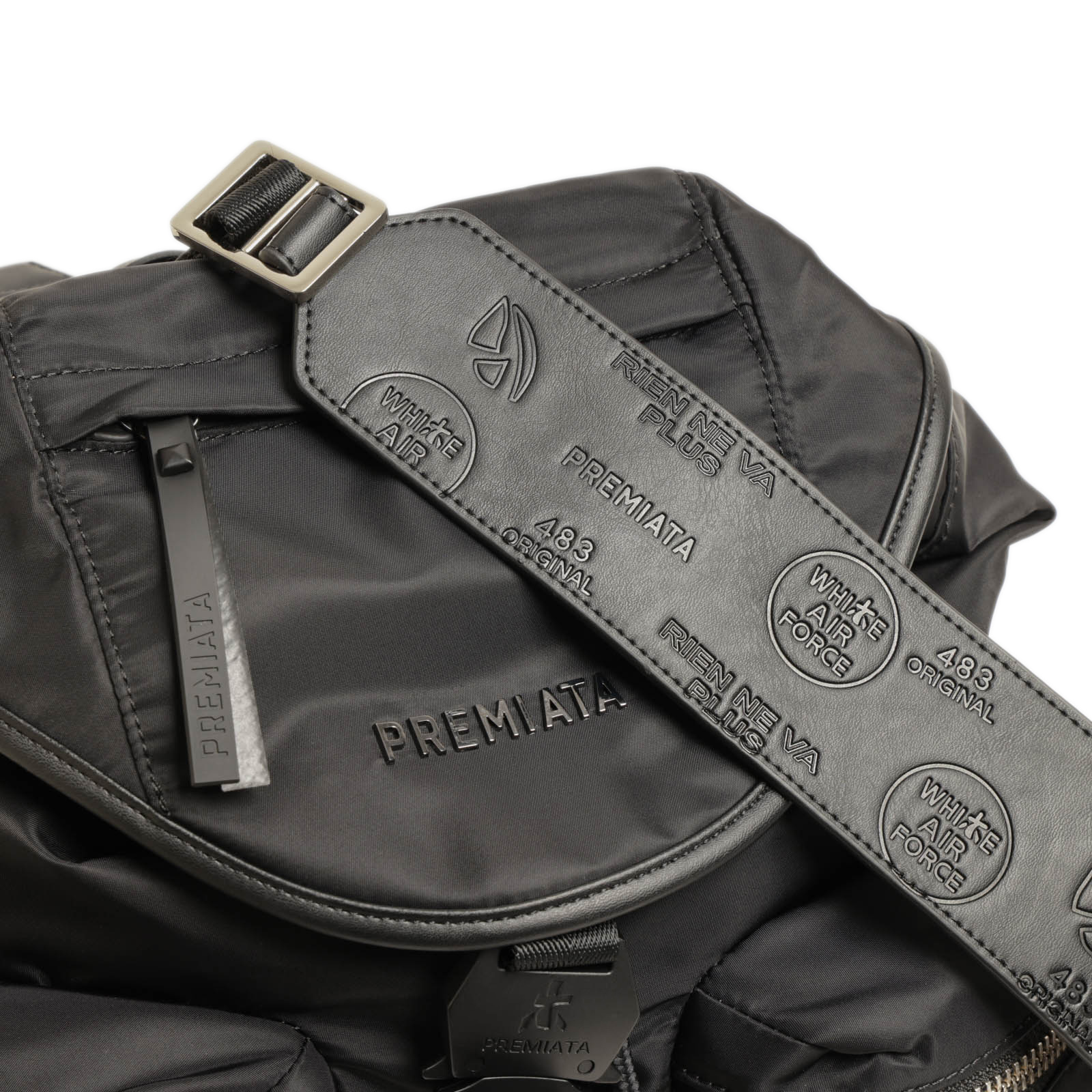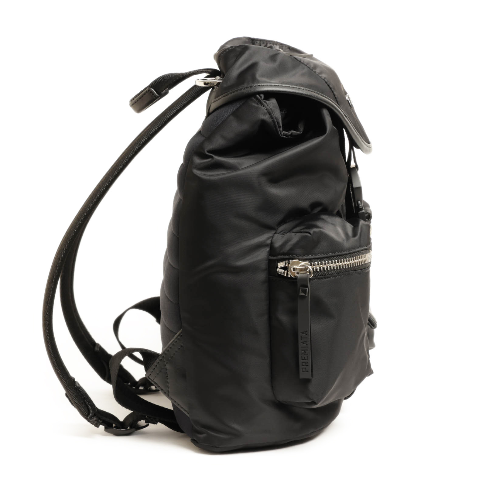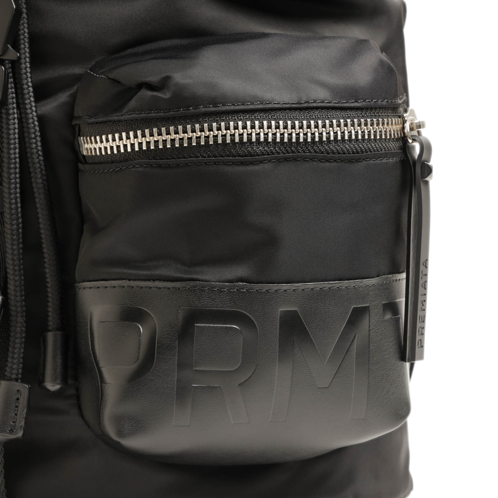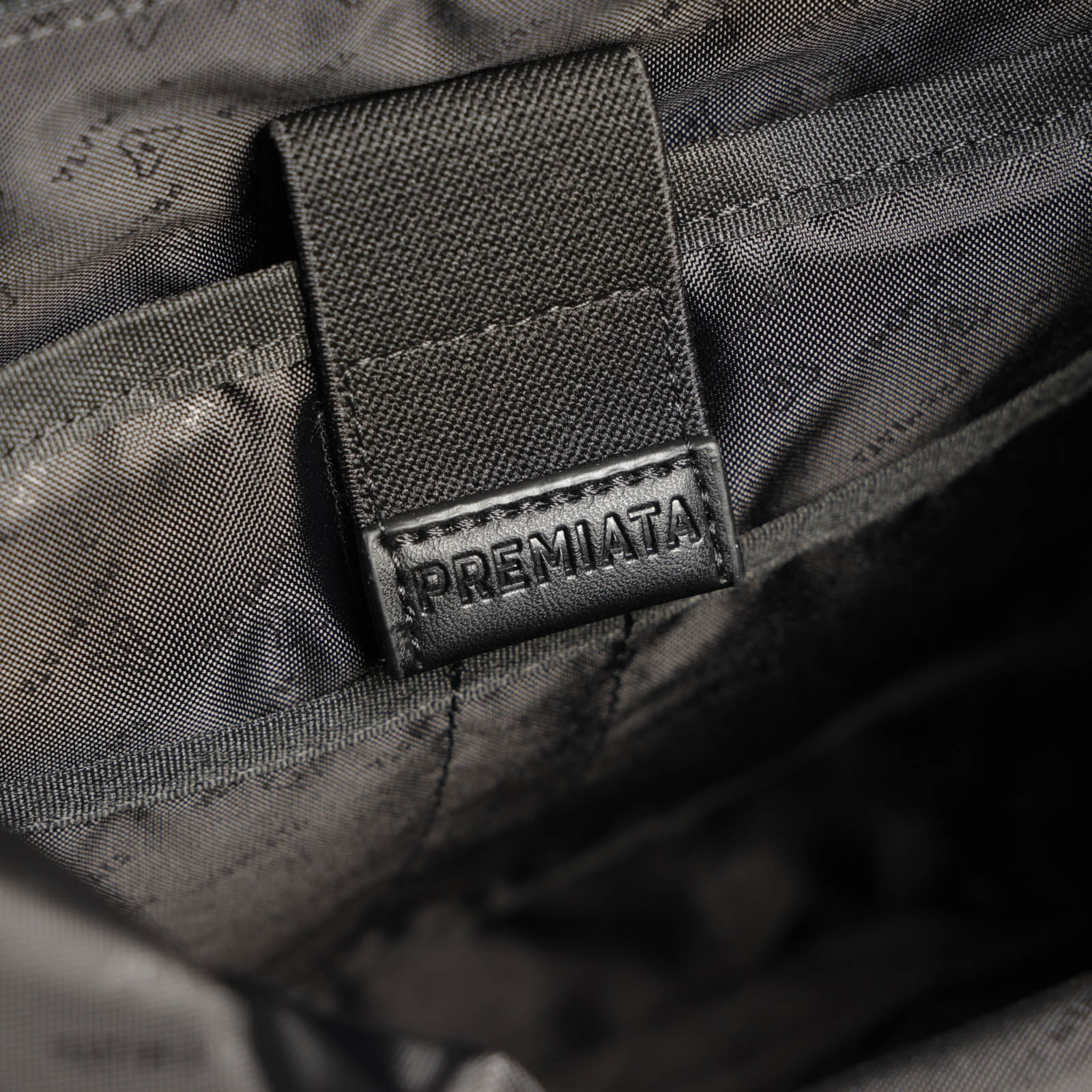 オールブラックでシックにまとめた中にPREMIATAのロゴが光るデザイン。ボディは上質なナイロンギャバジン地を使用。ほつれ防止、撥水加工を施しておりますので、デイリーにどんどん使える素材感です。