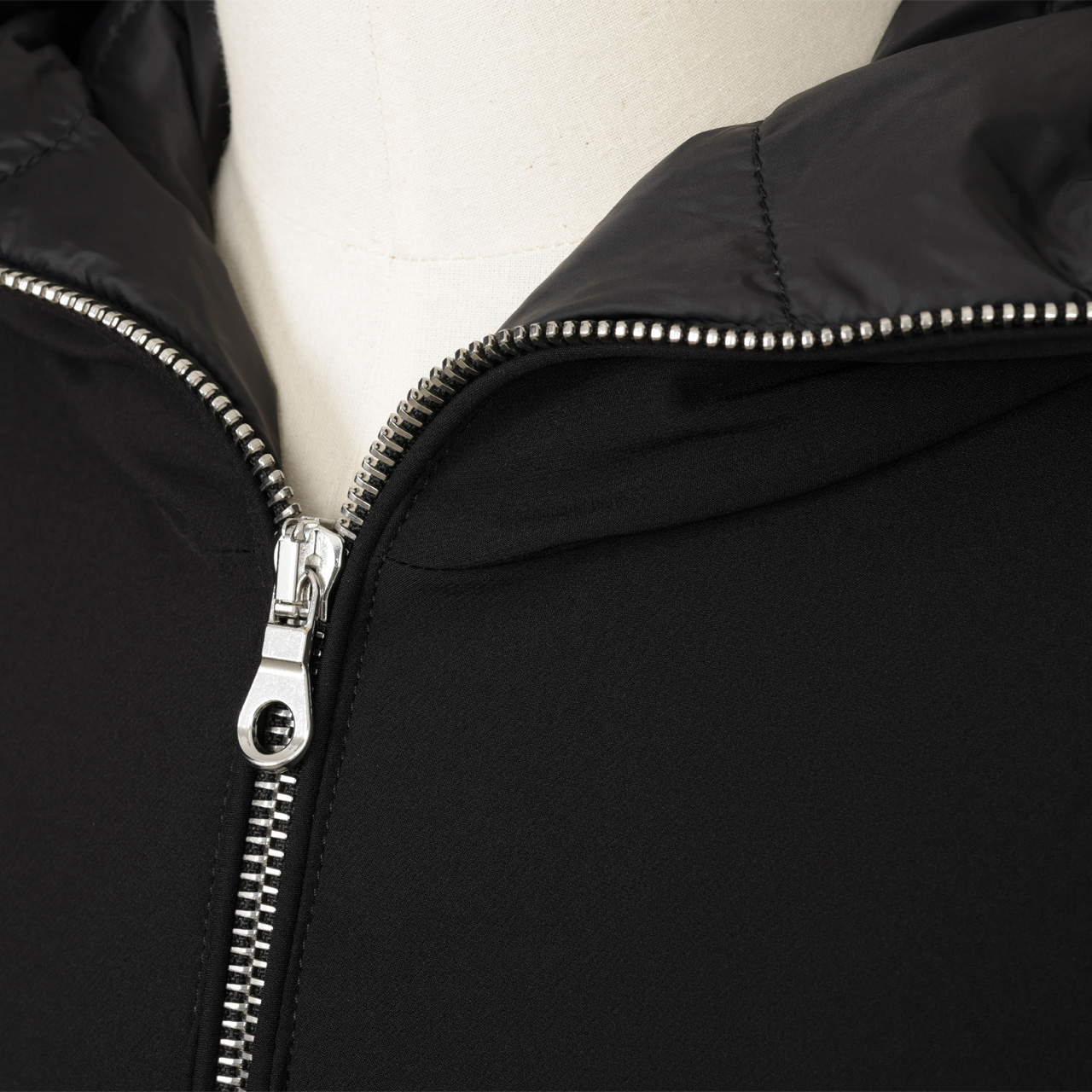 ボディにはストレッチナイロンのツイル地を使用。360度ストレッチのコンフォートな着心地を実現し、ナイロンの持つ光沢感で品の良さをプラス。スポーティさとラグジュアリーさが見事に共存した一着に仕上がっております。