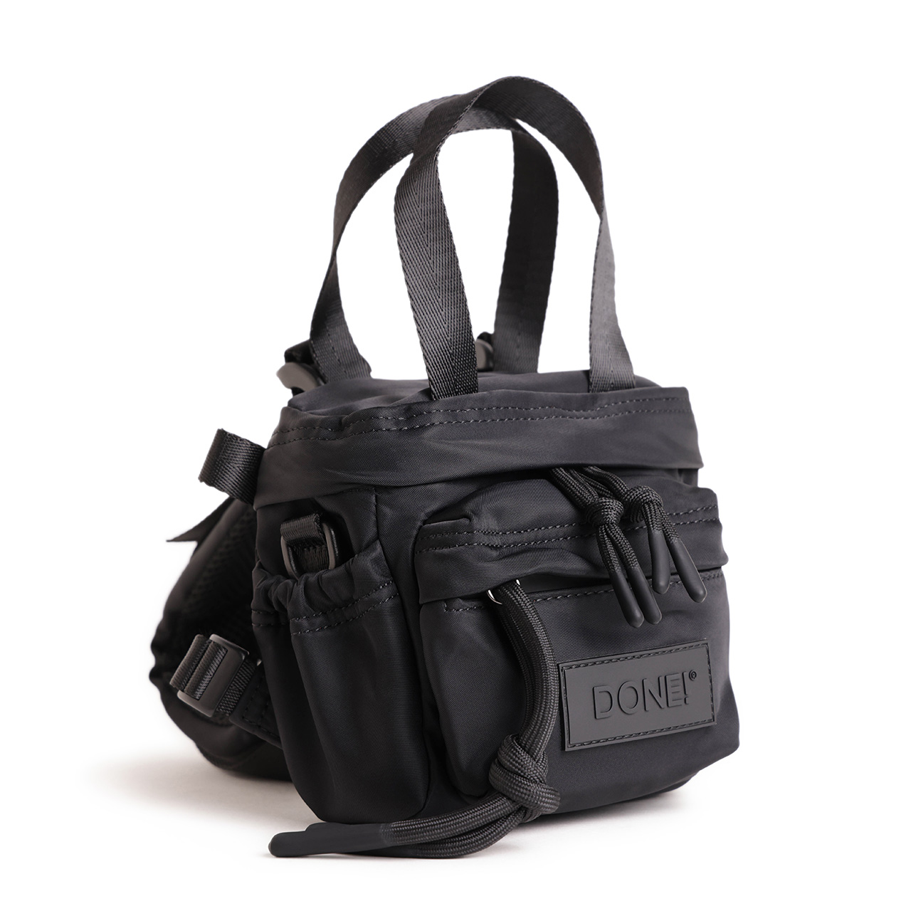 DONE!では80%認証リサイクルナイロンや、生産廃棄物からアップサイクルされたレザー等、持続可能な素材を使用。