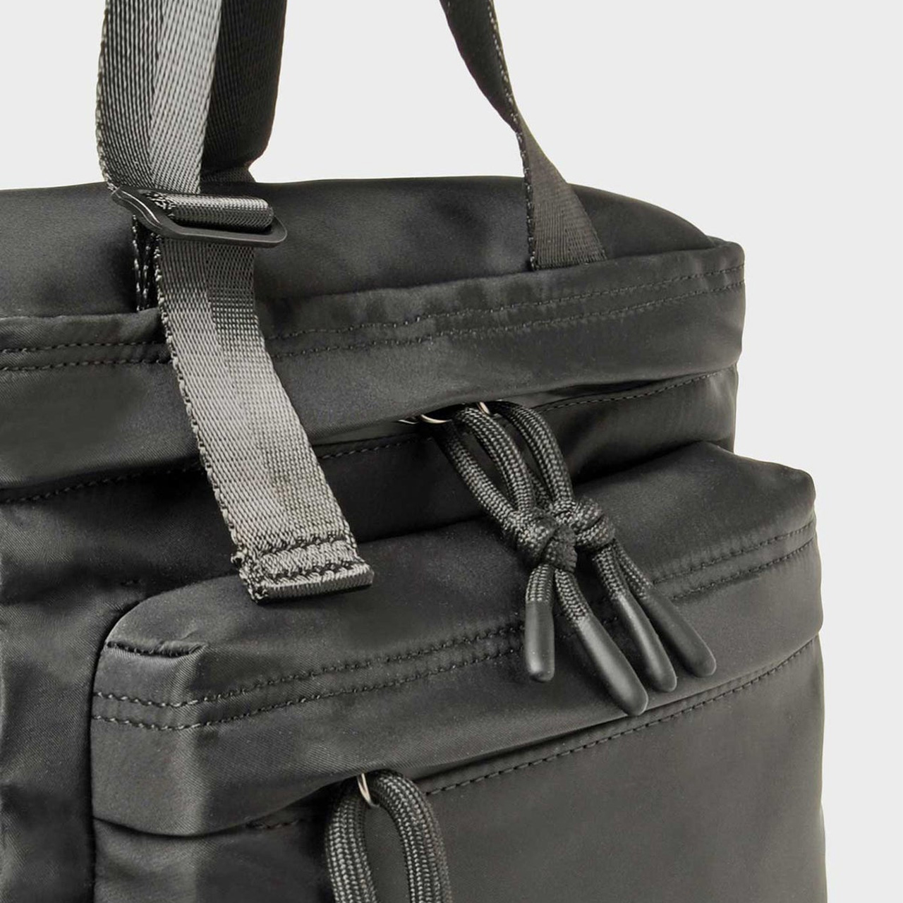 素材は100%リサイクルナイロンを使用しており、程よい艶のある表情に加えて防水性も備えた、見た目と機能性を両立した素材となっております。