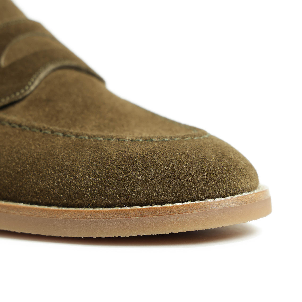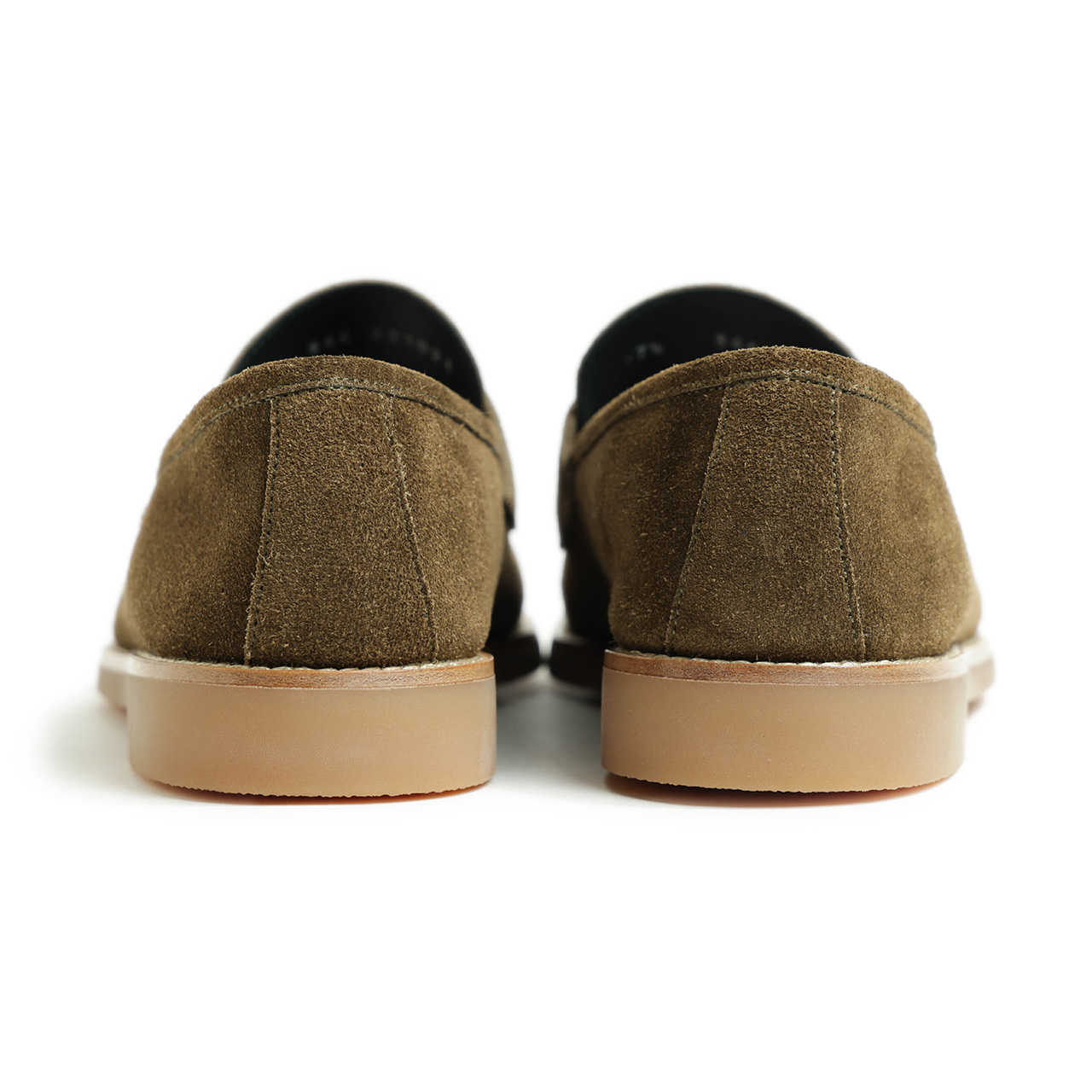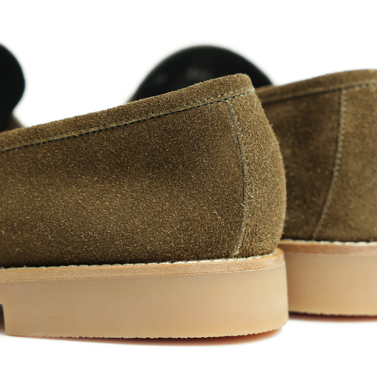 カラーはカーキでご用意。深すぎず明るすぎないトーンのカーキは春夏のみならず、通年お使いいただけそうな色味です。カジュアルからドレススタイルの足元まで幅広く合わせていただけます。