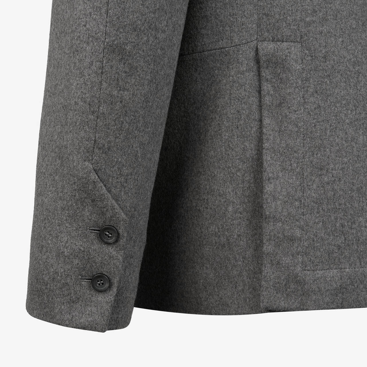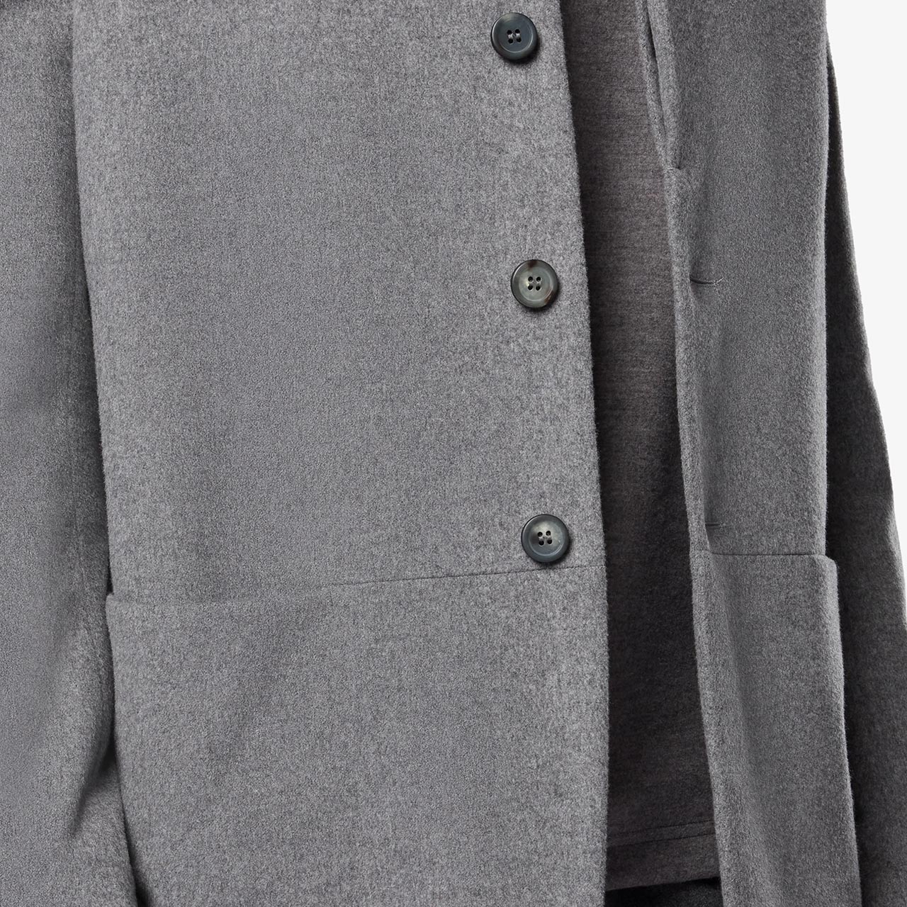 素材には、上質なカシミヤをブレンドしたエクストラファインWISH®ウールを使用。糸染めによる深みのある色合いと柔らかな肌触りが特徴です。軽やかなドレープ感が自然な動きを生み、内側のボタン付きポケットが控えめながら高い実用性を発揮します。