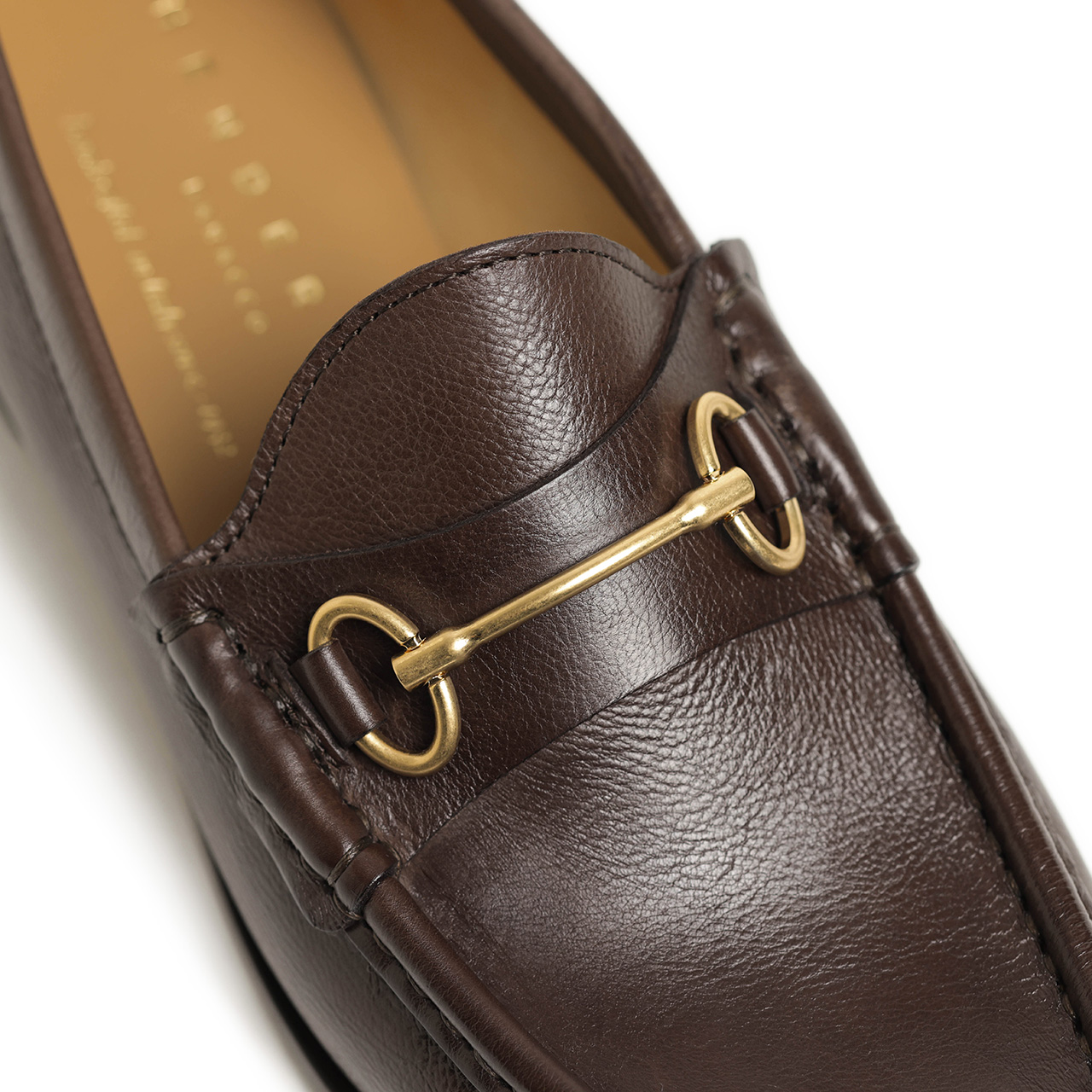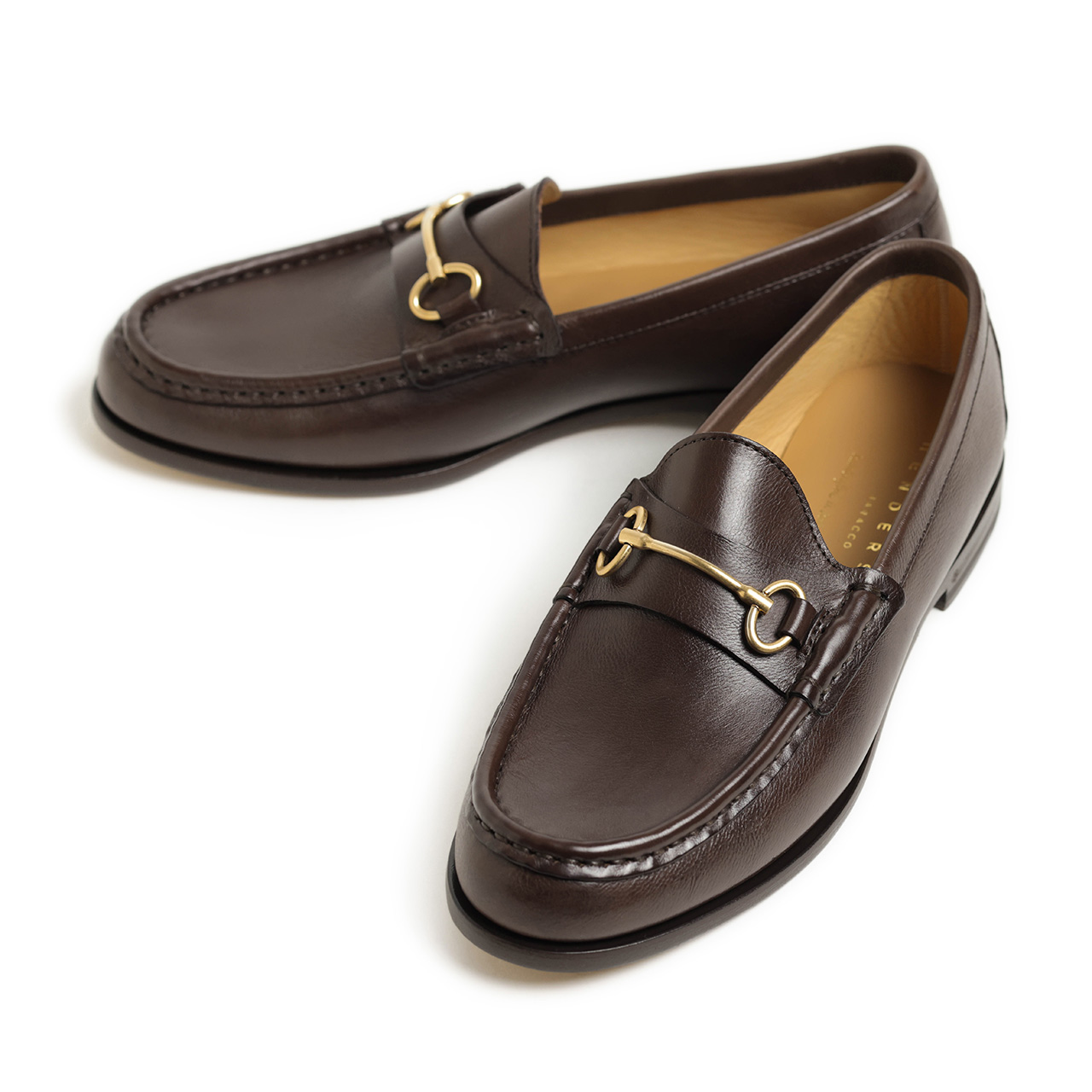 こちらは華奢なビットが品の良さを演出するローファー。アッパーにはナチュラルなシボ感が印象的なカーフレザーを使用。革本来の艶が足元をエレガントに魅せ、薄手でソフトなレザーは第二の皮膚であるかの如く履き始めから足にフィット。ゴールドカラーのビットが更にアクセントをプラスしてくれます。
