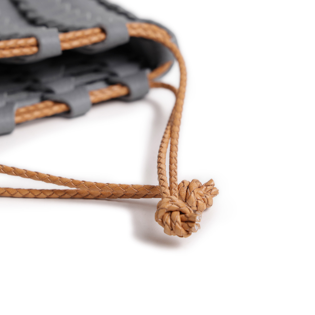 ドローストリング部分もレザーの組紐を使用し、どこをとっても上質なレザーの感触が楽しめる逸品です。