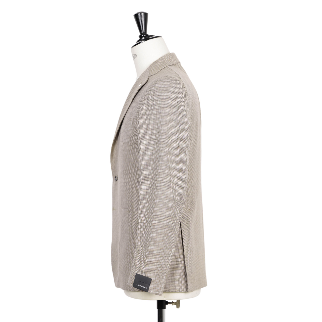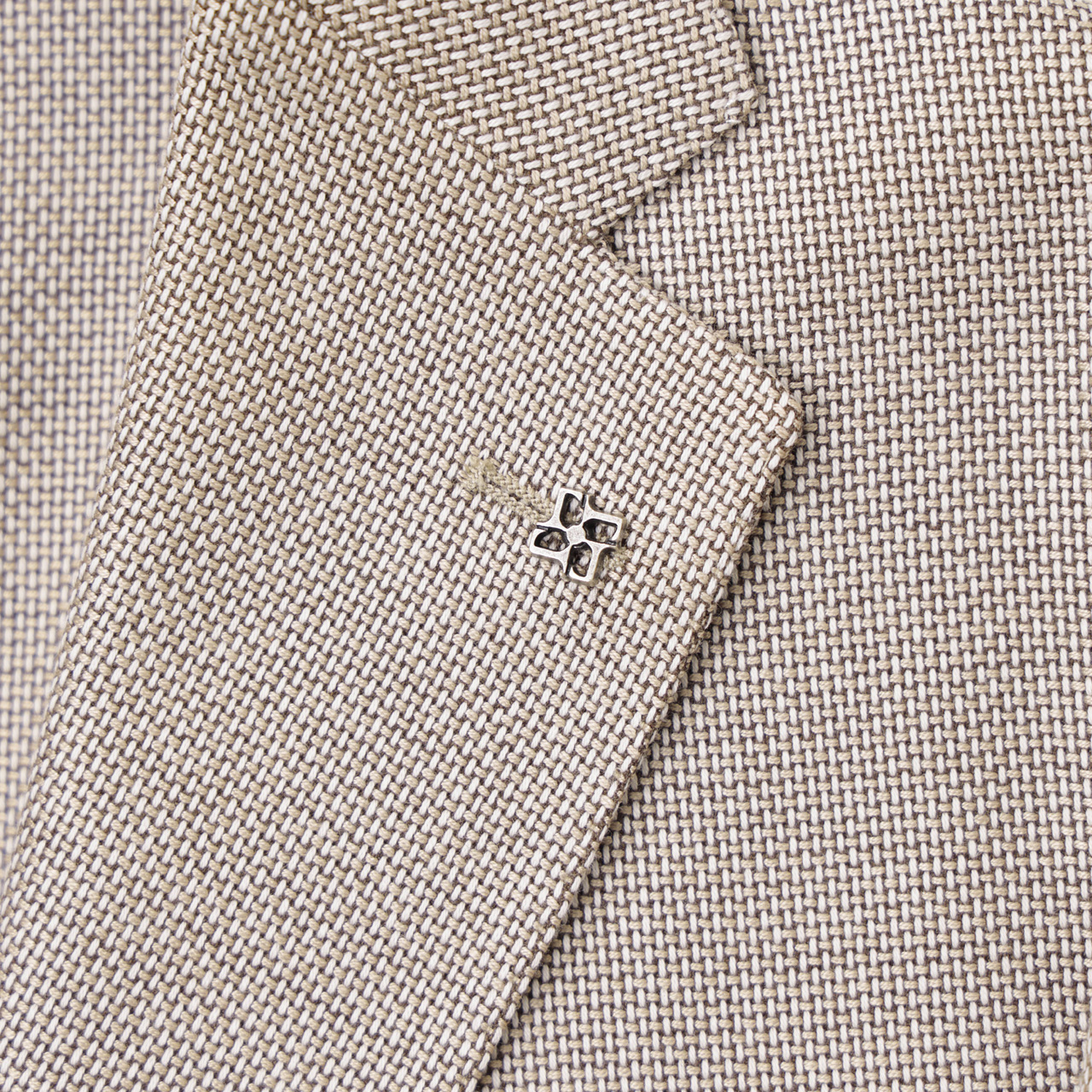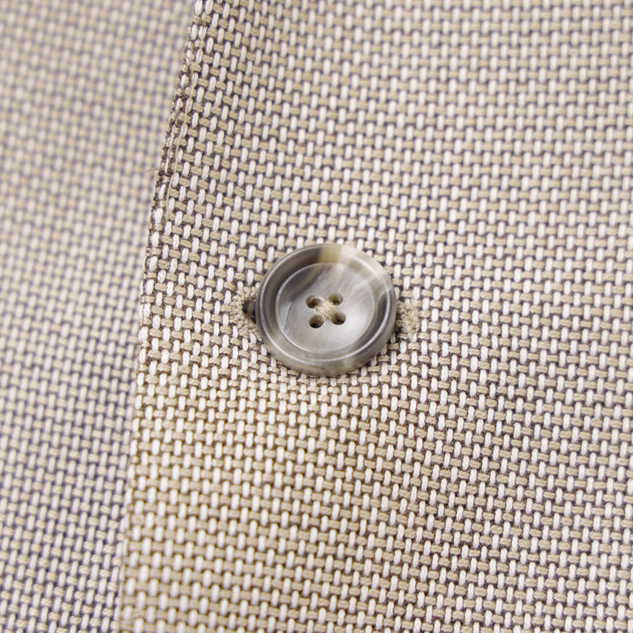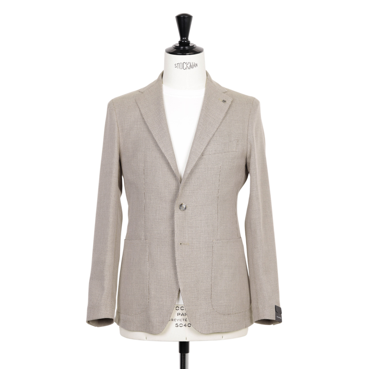 本モデルは春夏ならではのホップサック地を採用した一着。コットンをベースにウールとストレッチ素材の3者混地は程よいハリと軽さ、そしてサラッとした肌触りが特徴的。