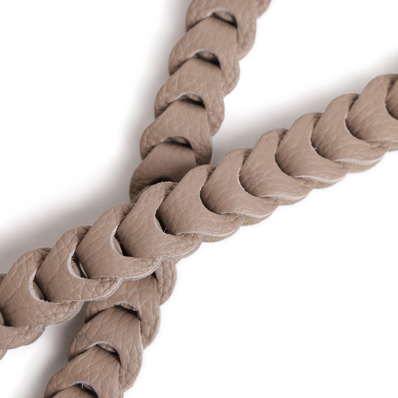 BOHOシリーズは「無限の連結法」というテーマのもとに作られており、プルタブのようにカットしたレザーを編み込むことで何とも言えない独特な革の表情、手触り、エイジングを楽しむことが可能。