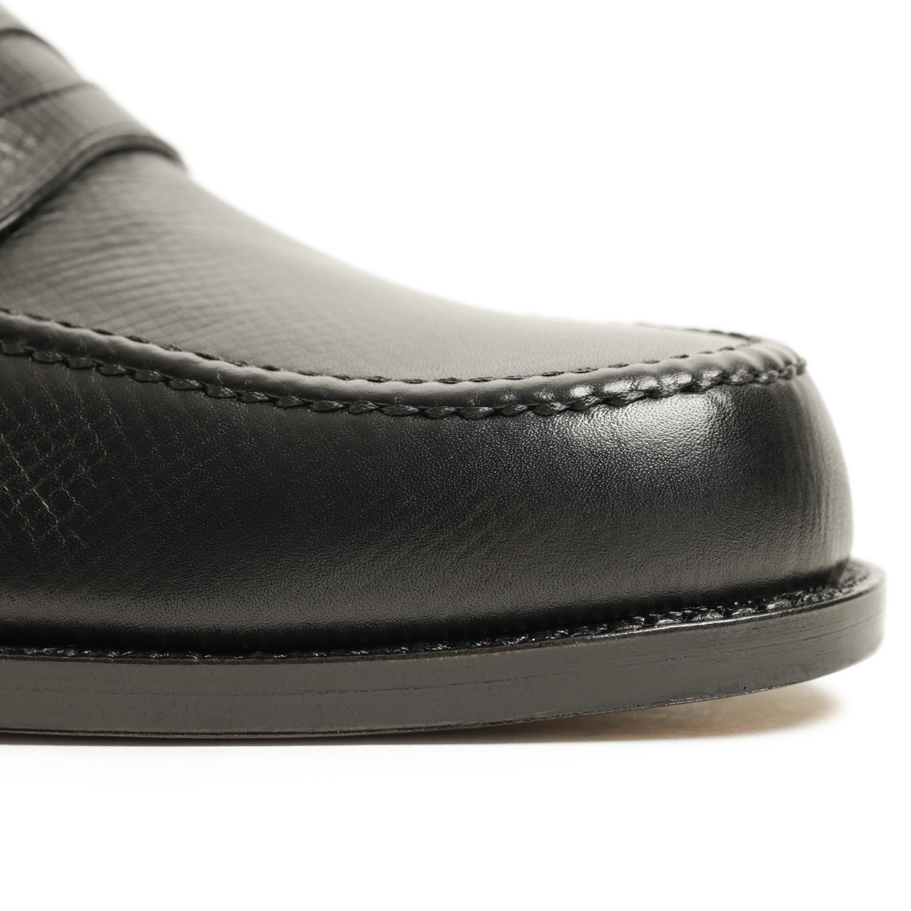 通常のカーフよりも更に厳選されたカーフレザーを採用しており、細かなシボのある表情と豊富な油分、それにより触れただけでわかるもちっとした感触と柔らかさが特徴です。