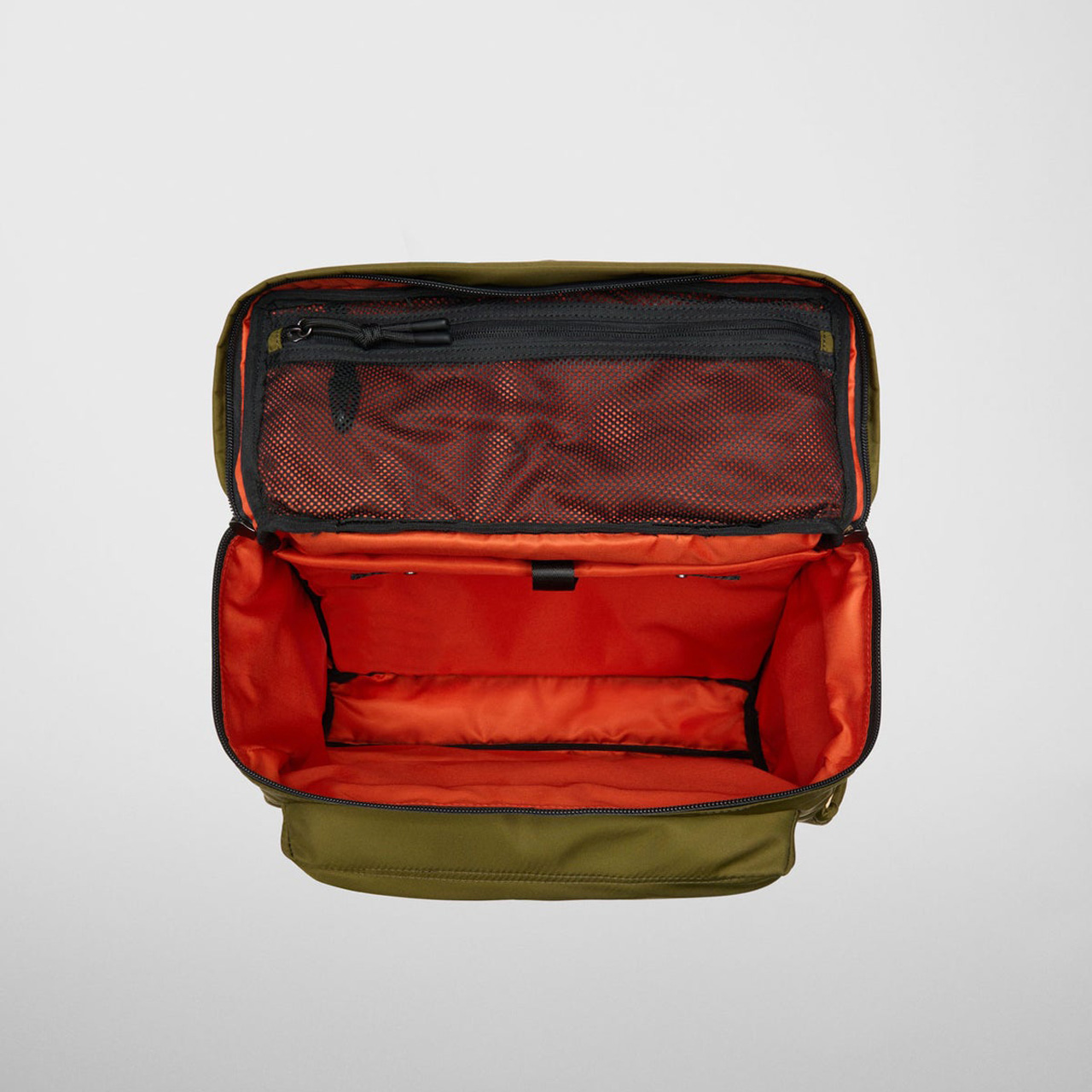 素材は100%リサイクルナイロンを使用しており、程よい艶のある表情に加えて防水性も備えた、見た目と機能性を両立した素材となっております。