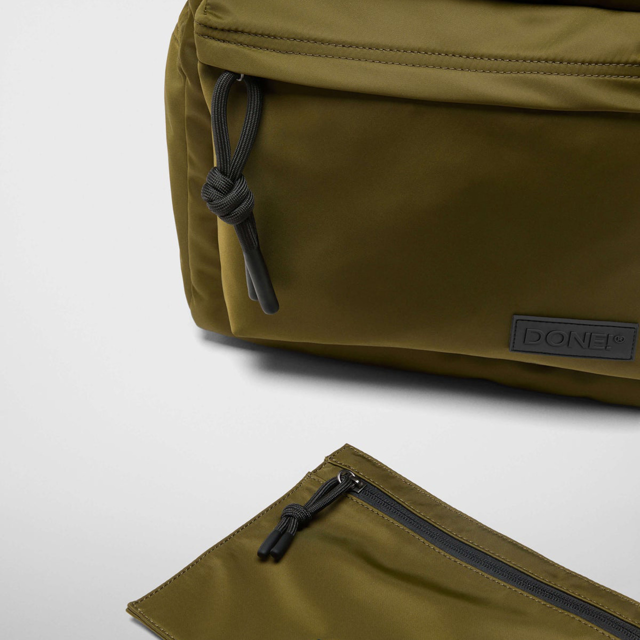 DONE!では80%認証リサイクルナイロンや、生産廃棄物からアップサイクルされたレザー等、持続可能な素材を使用。