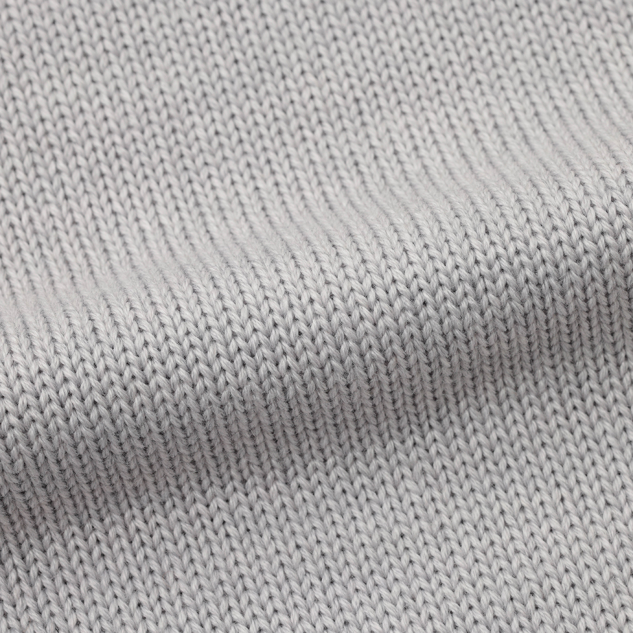 毛羽立ちが少なく独特な滑らかさがある生地感は触った瞬間に上質さがうかがえ、ニットアイテムで気になるあのチクチク感がなく快適な着心地を実現してくれます。