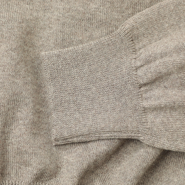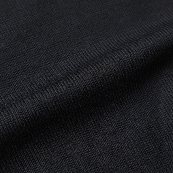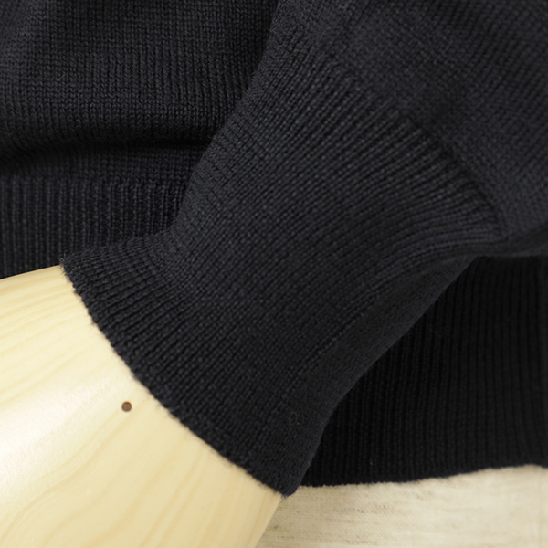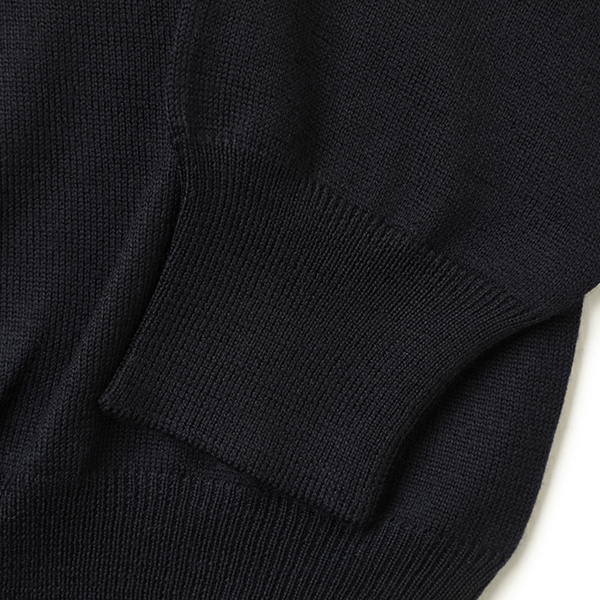 生地はウール100%の12ゲージ。滑らかな肌触りでチクチク感もなく非常に快適な着心地を実現しています。程よい厚みもあるので、すっきりとした見た目ながら保温性も確保されております。