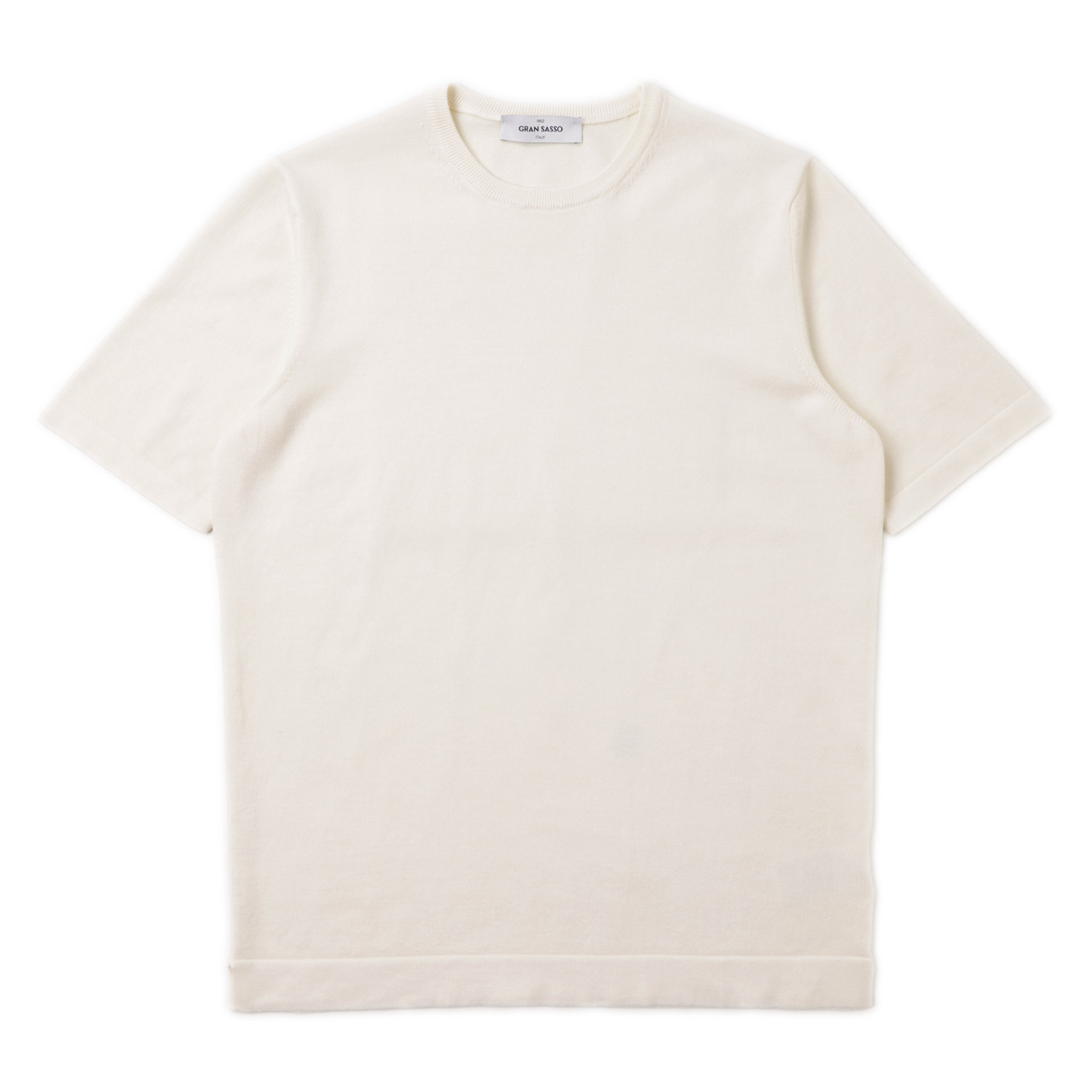 Gran Sasso グランサッソ ニット Tシャツ ハイゲージ コットン エジプト綿 クルーネック プルオーバー 半袖 58138-18120 007(アイボリー)