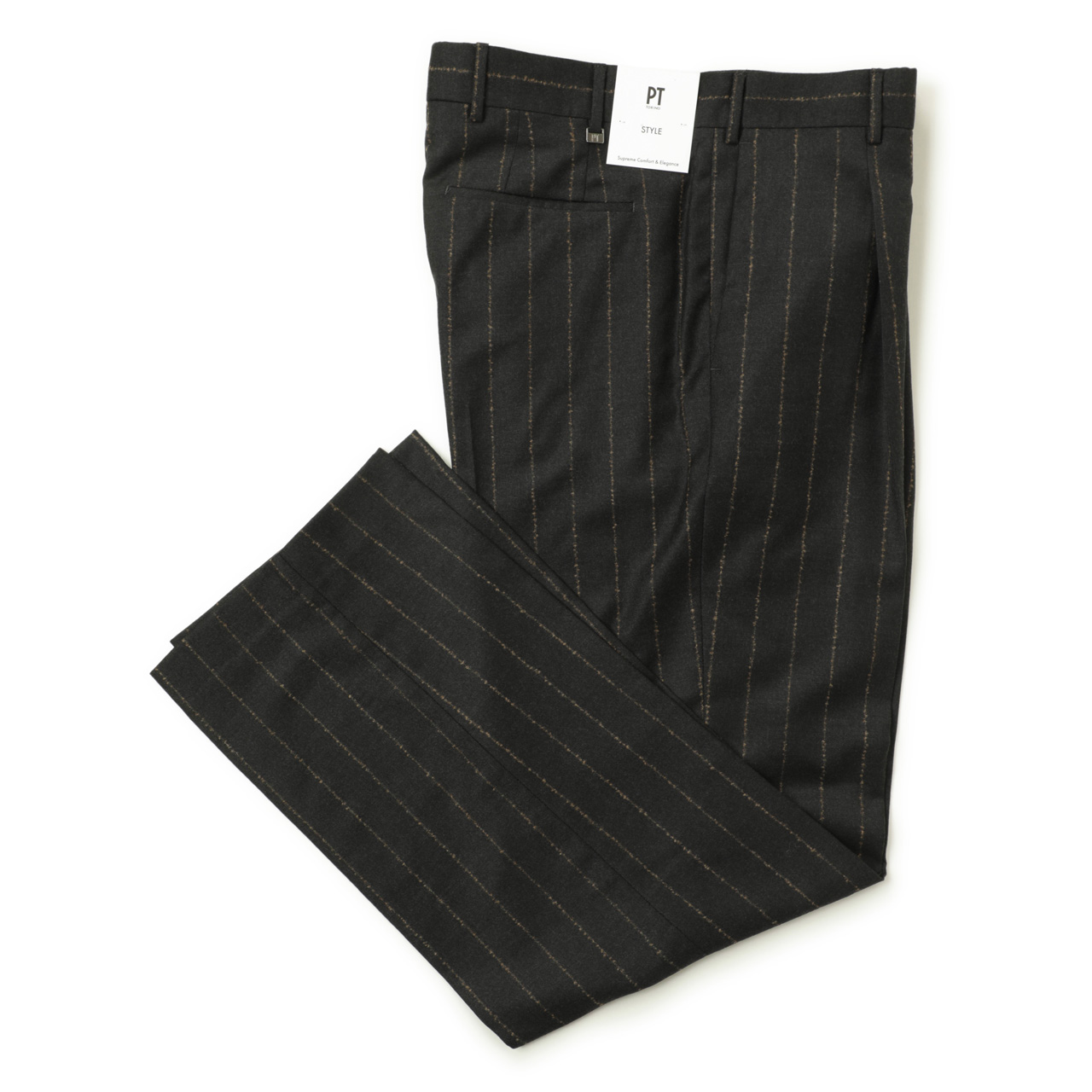 PT TORINO パンツ スラックス STYLE スタイル ウールストレッチ ストライプ ブークレ QUINDICI ワンプリーツ ハイウエスト ワイド テーパード MR92 0260 グレー/ブラウン