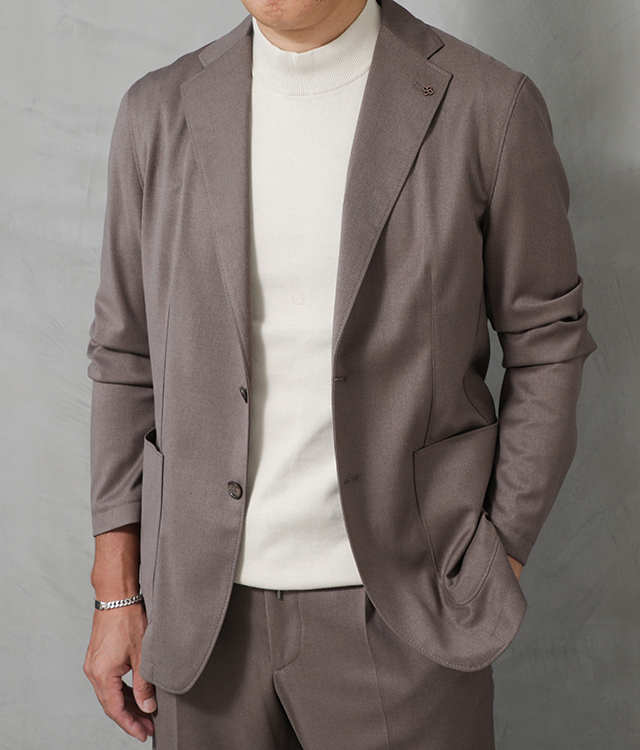 タリアトーレ 2B シングル セットアップ ドローコード ウエストゴム ポリエステル レーヨン ストレッチ ワンプリーツ 筒袖 A-LIGHT12K14 T1022(グレージュ)