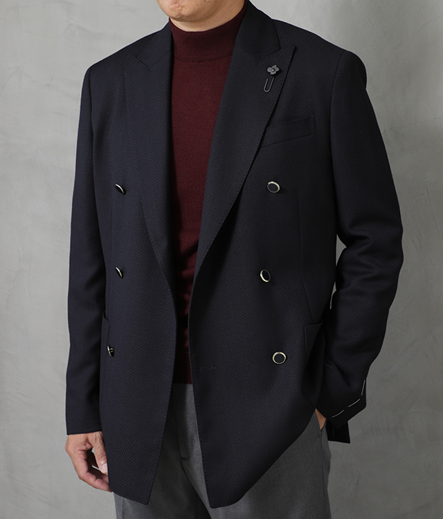 ラルディーニ ジャケット ダブル 6B ウール ヘリンボーン メタルボタン 5216A6203JQ5502 CN65502 860/ネイビー