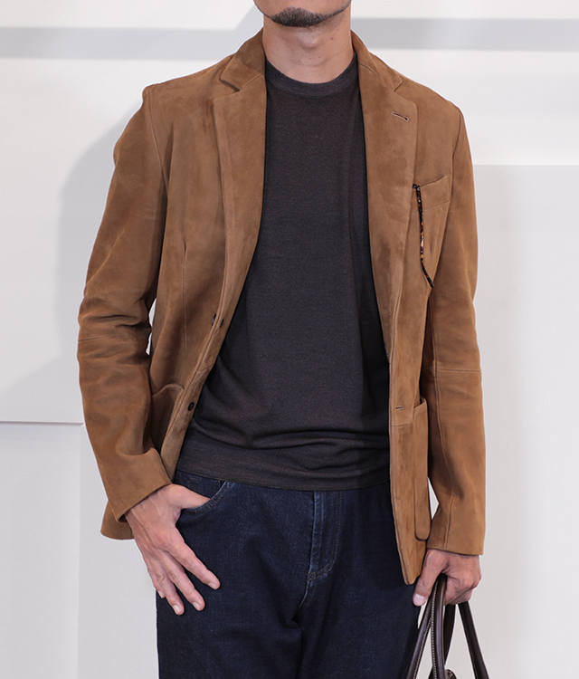 EMMETI DIEGO エンメティ ディエゴ ジャケット テーラード シングル 2B スエード ラムレザー TERRACOTTA/ブラウン