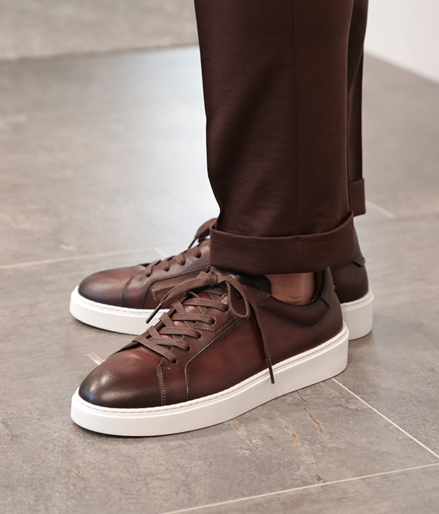 MAGNANNI マグナーニ メンズ 靴 スニーカー ローカット レースアップ レザー ヌバック シボ革 コートシューズ 厚底 パティーヌ仕上げ 24720 MARRON/ブラウン
