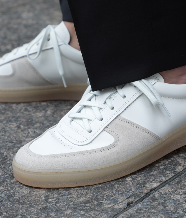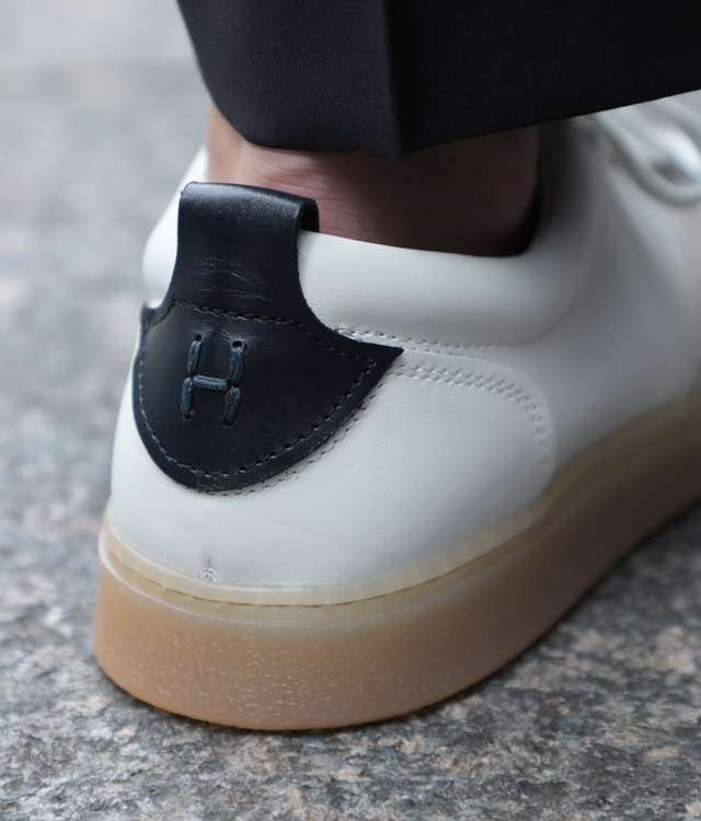 HENDERSON ヘンダーソン スニーカー レザー ジャーマントレーナー クリアソール アンラインド ローカット レースアップ GRECALE グレカーレ BIANCO/BLU(ホワイト/ネイビー)