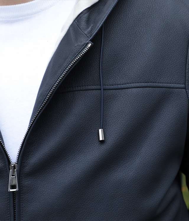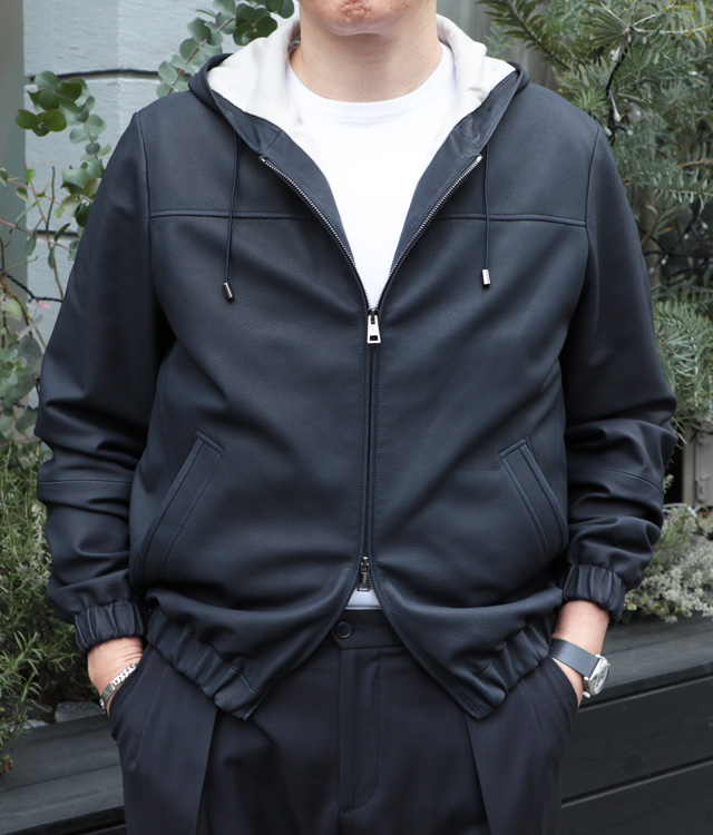 CALIBRO 12 カリブロ 12 ブルゾン パーカー フーデッド レザー ゴート ダブルジップ MALTESE PEDRA/ネイビー
